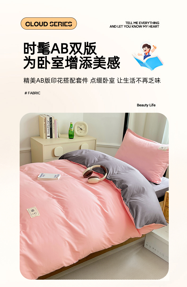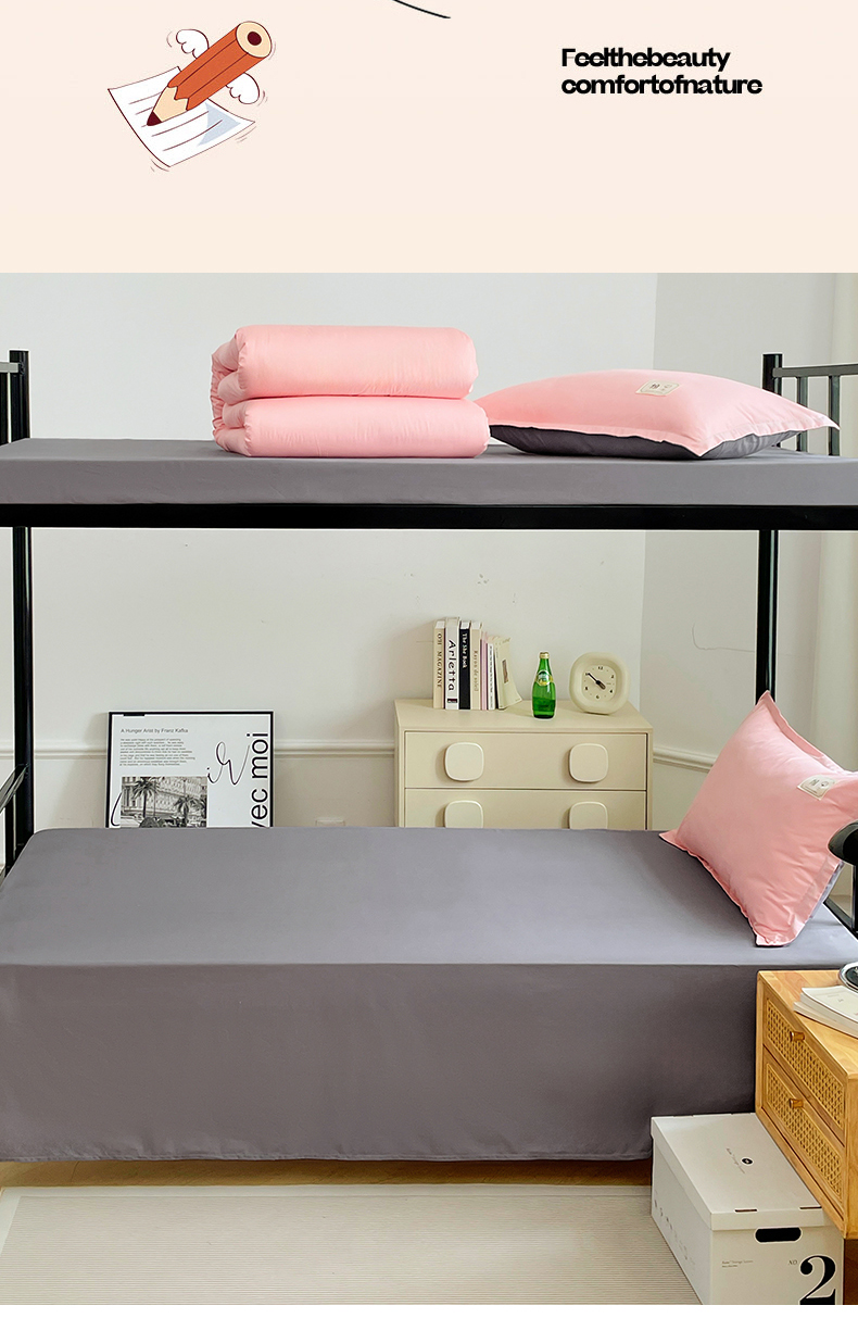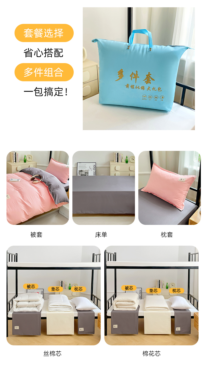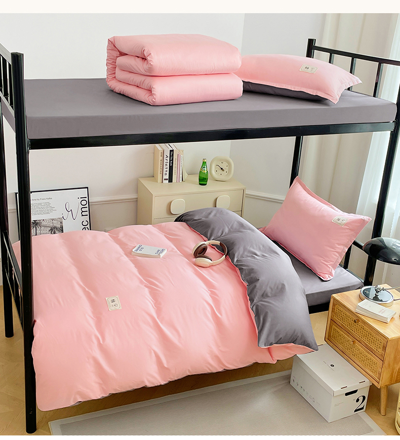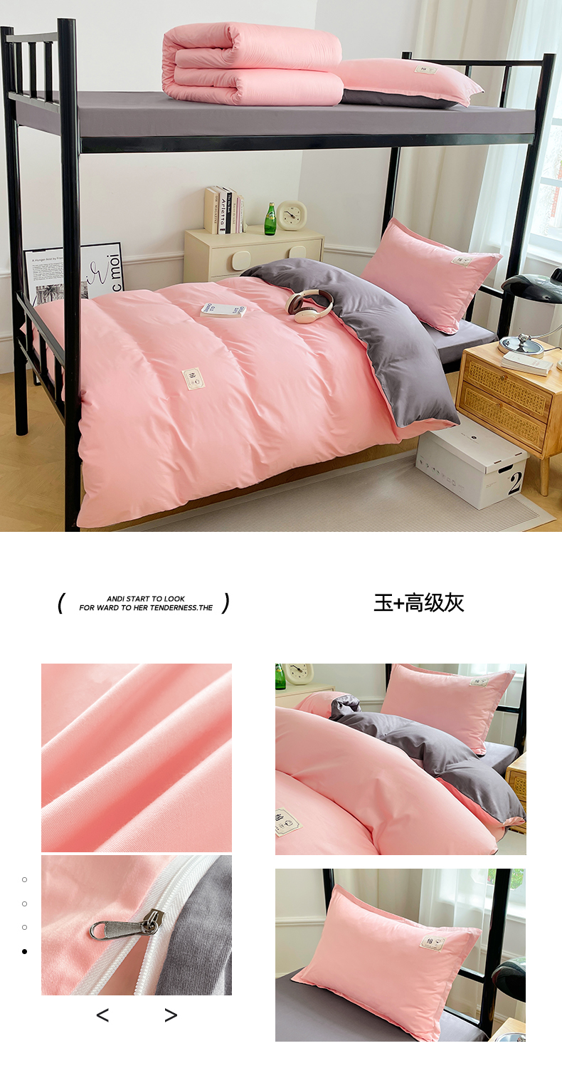 锦润家纺2025新款13372全棉纯色双拼学生宿舍三件套六件套