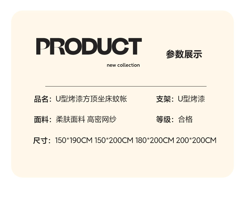 商品名称:(总)博诺蚊帐 2025新款U型烤漆方顶坐床蚊帐