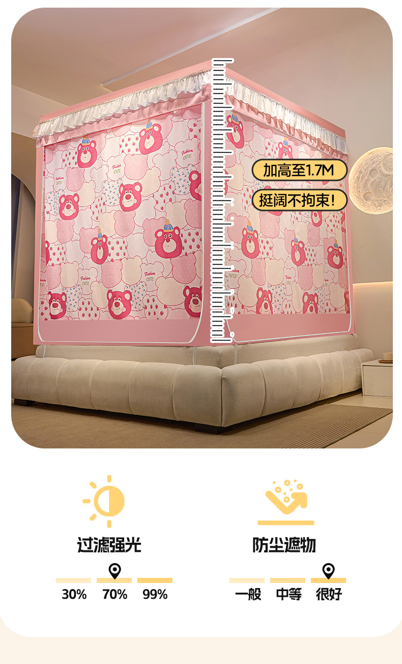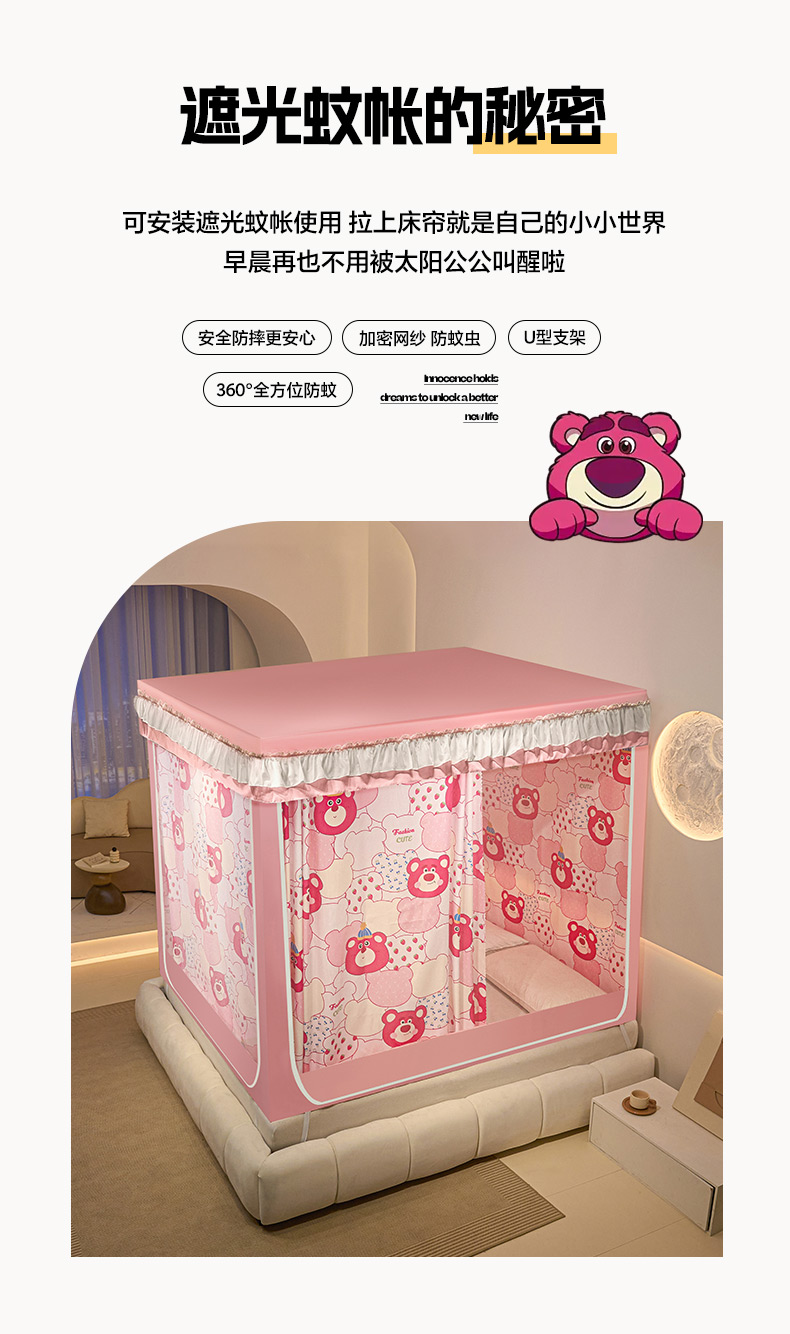 (总)博诺蚊帐 2025新款99%五面遮光加厚涂层遮光大版数码印花带靠墙帘卡通学生蚊帐,摆烂芝麻球,发呆呆考拉,粉红小玉桂,奋斗的小狗,可爱俱乐部,快乐小新,奶萌labubu,俏皮猫咪,小熊懒洋洋
