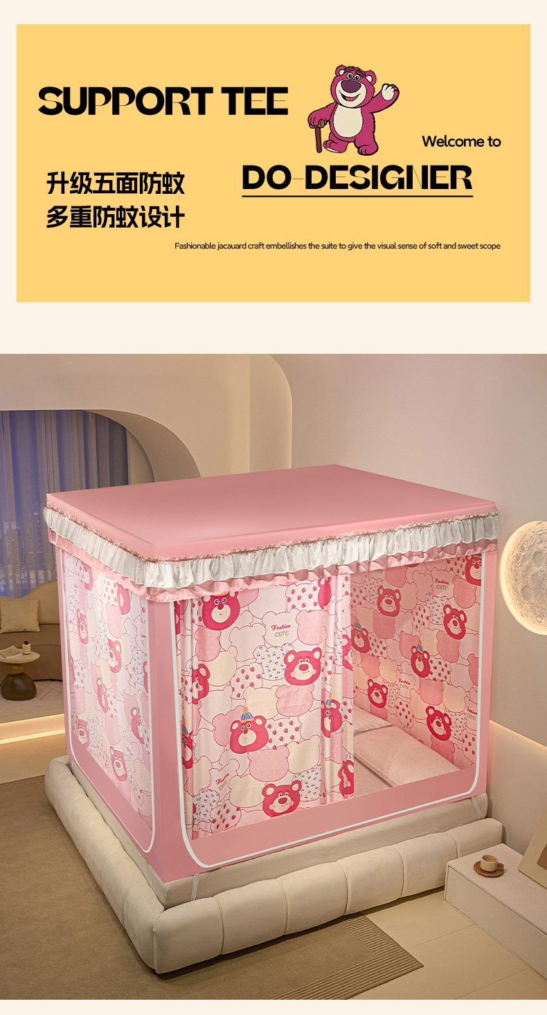 (总)博诺蚊帐 2025新款坐床全底蚊帐,田园绿,星空灰,樱花粉