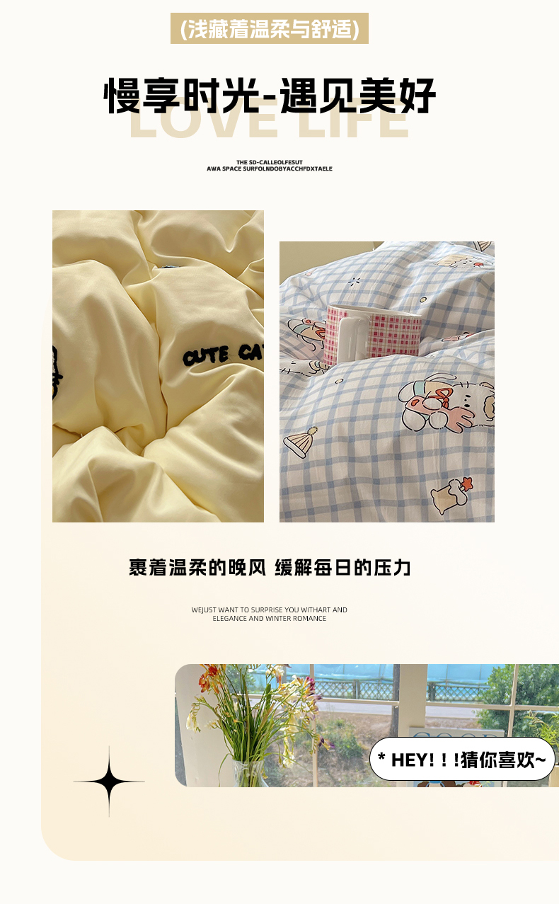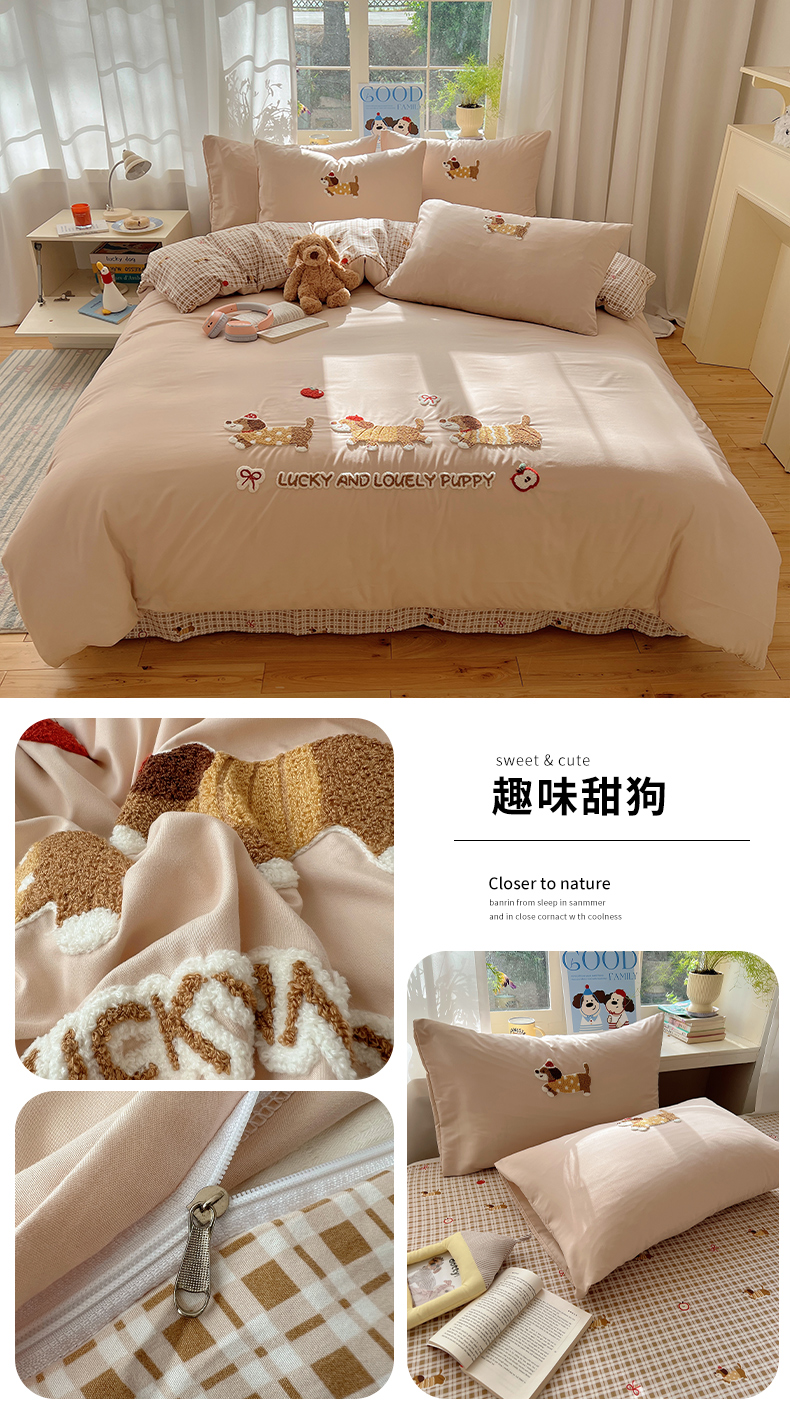 (总)韩都家居 2025新款卡通贴布绣系列加厚牛奶绒四件套,乖乖兔,冬日猫咪,苹果狗狗,绅士小狗,顽皮西高地,幸运小熊