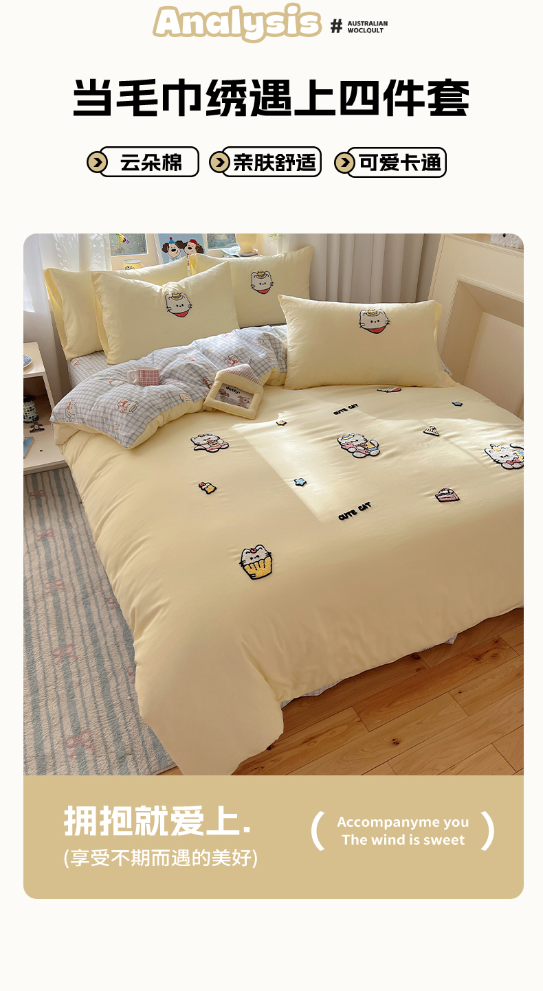 商品名称:(总)韩都家居 2025新款卡通软萌水洗棉毛巾绣四件套