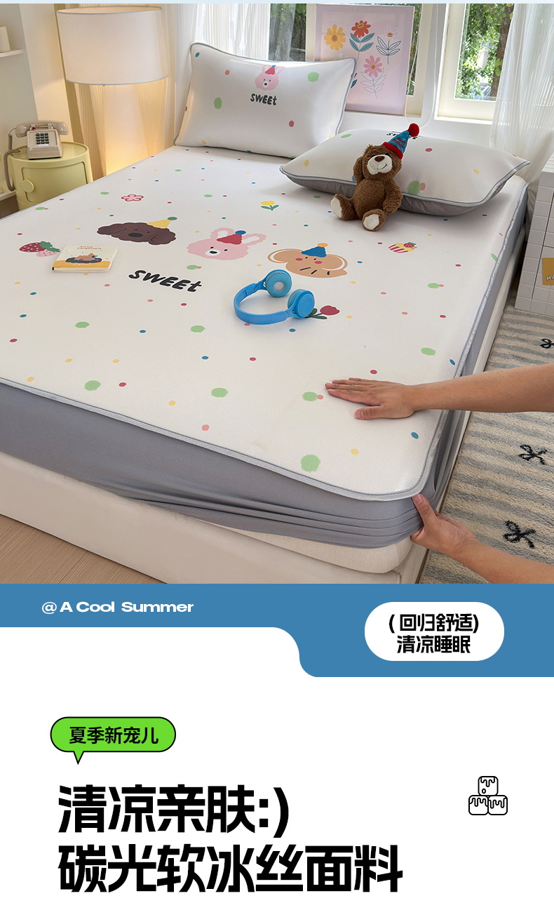 当前位置: 91家纺网 > 商品网购 > 床上用品 > 凉席 > 其他凉席 > (提供买家秀 爆款花型 不断货)2025新款A类碳光软冰丝凉席系列-床笠款 蓝格兔兔