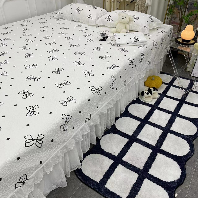 (总)禧瑞谷 2025新款冬季牛奶绒双层蕾丝花边床盖三件套床盖四件套,点点蝴蝶结,粉底小狗,蓝底小狗,奶油小狗,星月小确幸,KT猫,蝶舞白色,蓝底爱心,洛丽塔蓝,碎花小女孩,波点,草莓蝴蝶结,蓝色蝴蝶结,奶糖少女,蛋糕猫