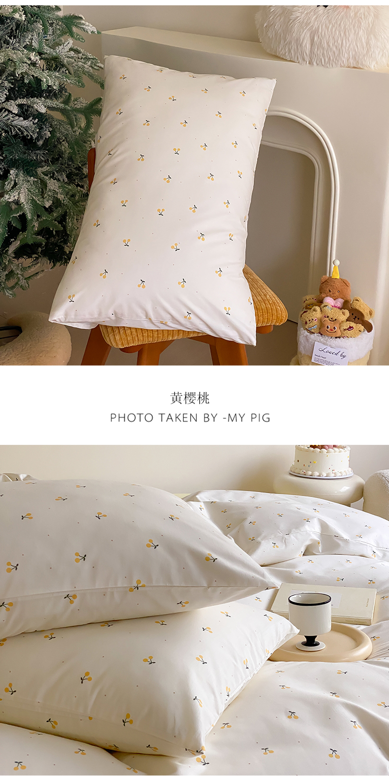 商品名称:Mr.pig猪先生水洗棉 2025新款小清新印花水洗棉全棉枕套 黄樱桃