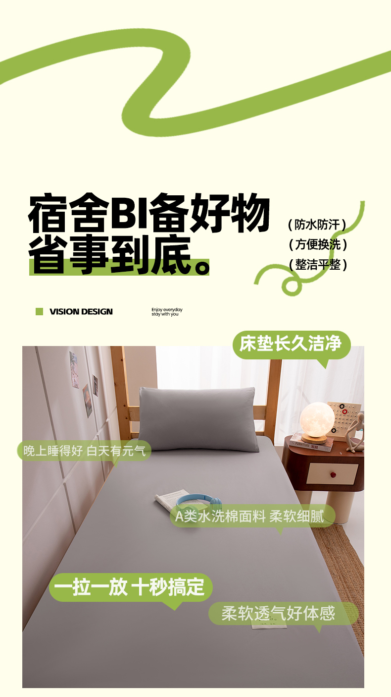 商品名称:暖季家纺2025新款无印风学生防水床笠 防水-魅影灰