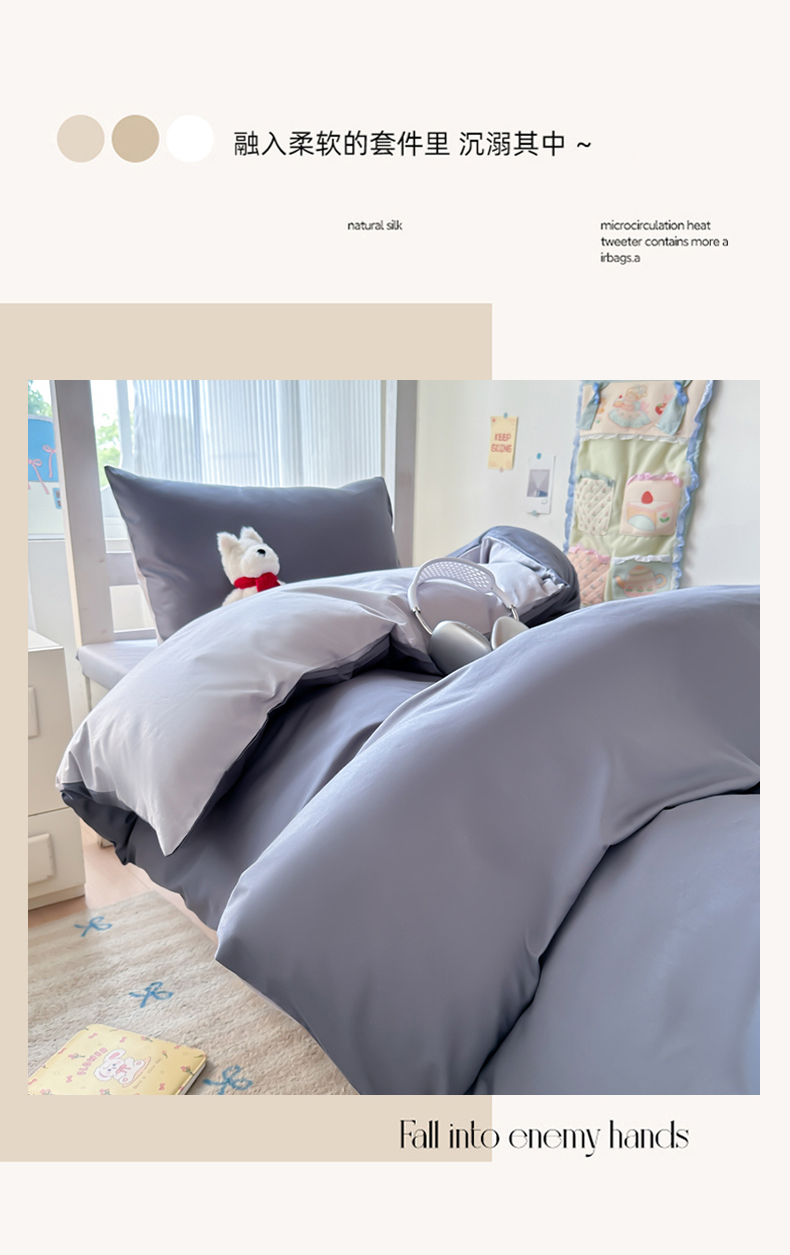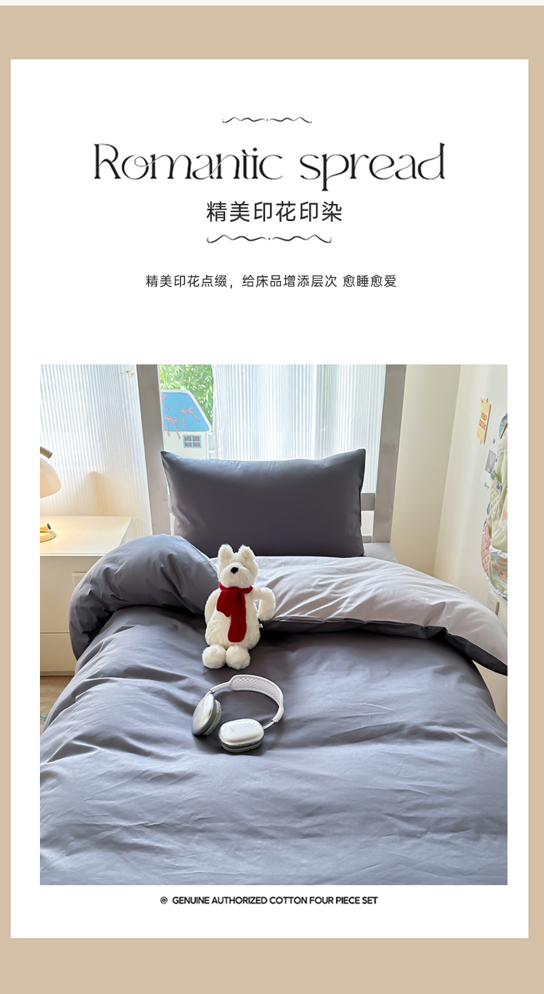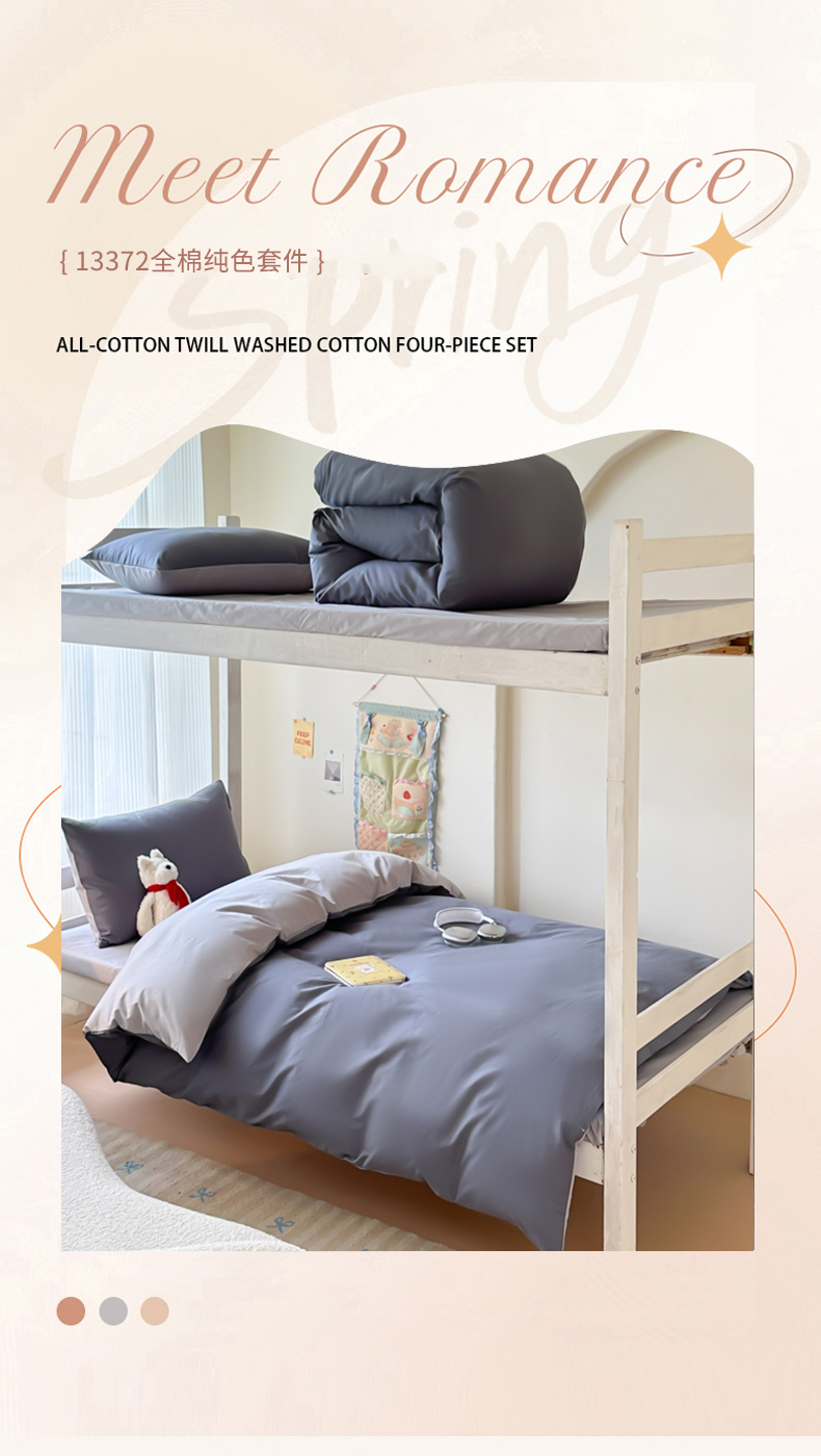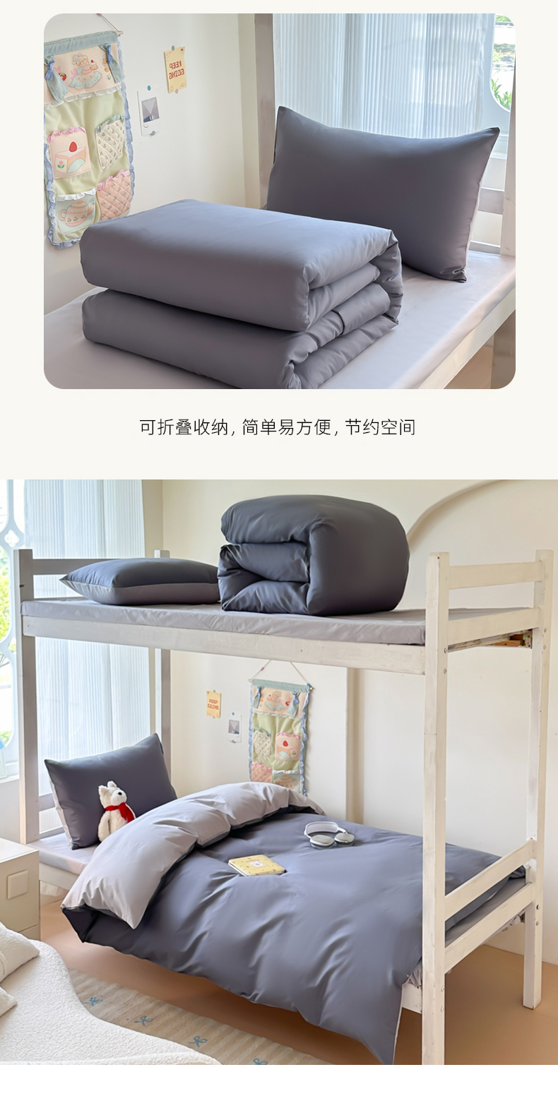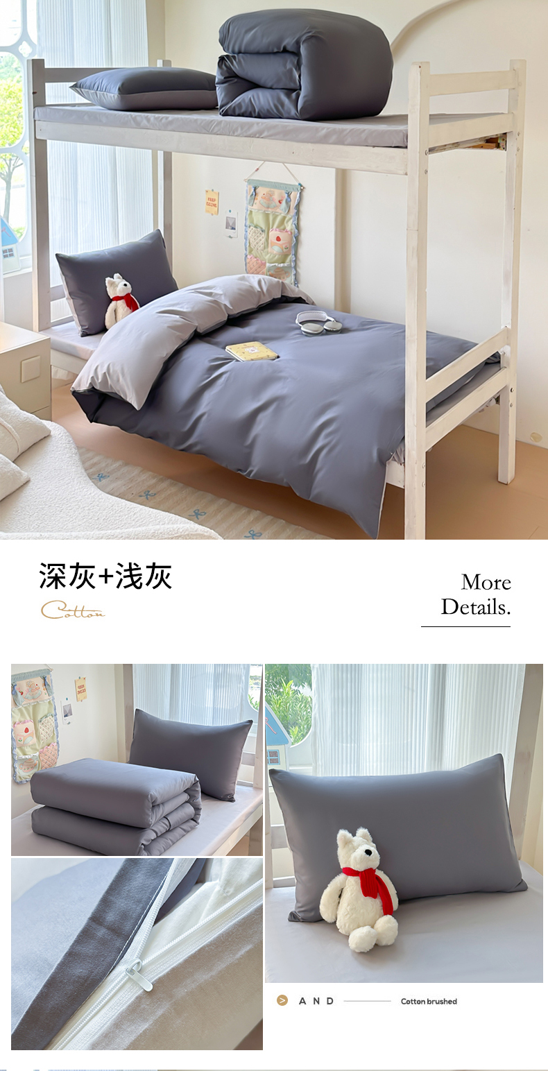 商品名称:简冠家纺 2025新款13372全棉纯色学生三件套 深灰+浅灰