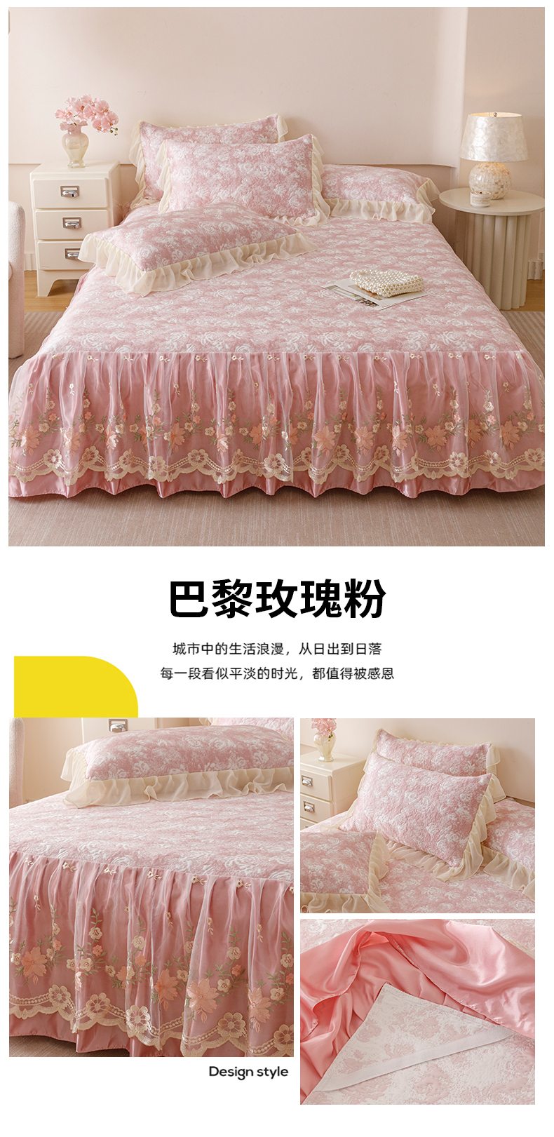 (总)好儿喜家纺 2025新款海洋丝凉感豆豆床裙凉席-巴黎玫瑰