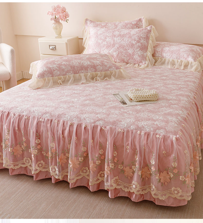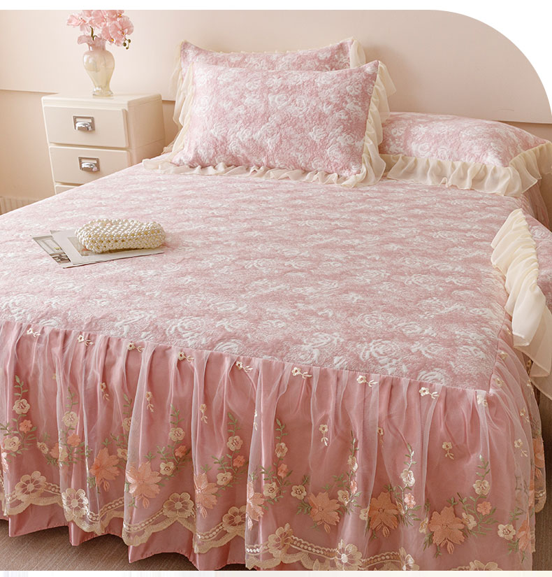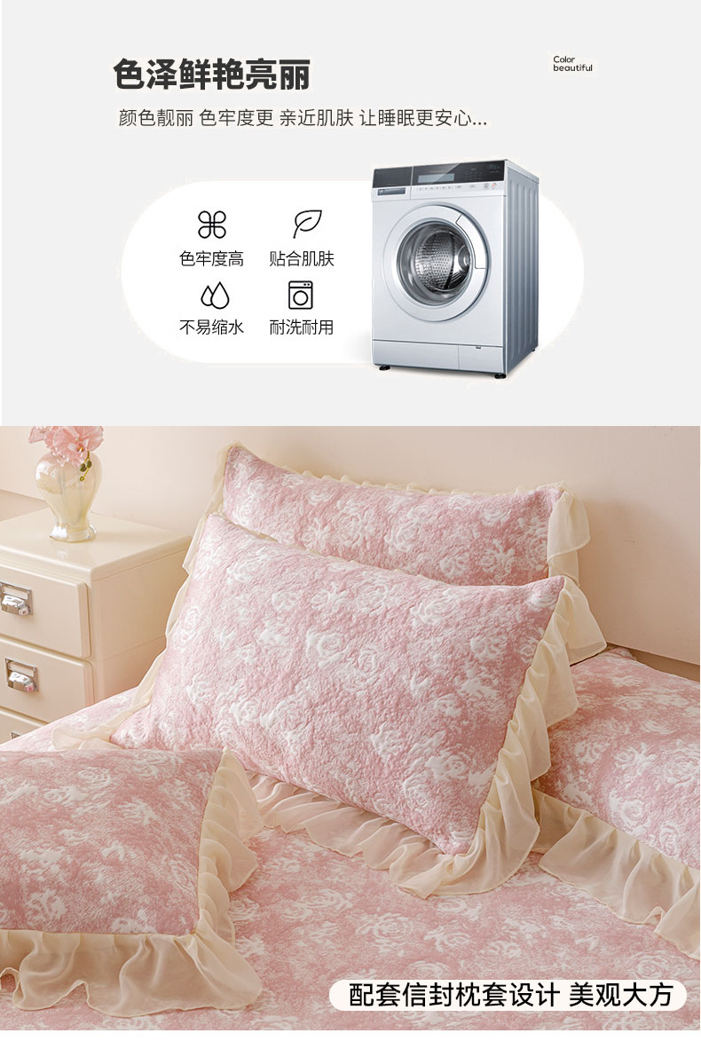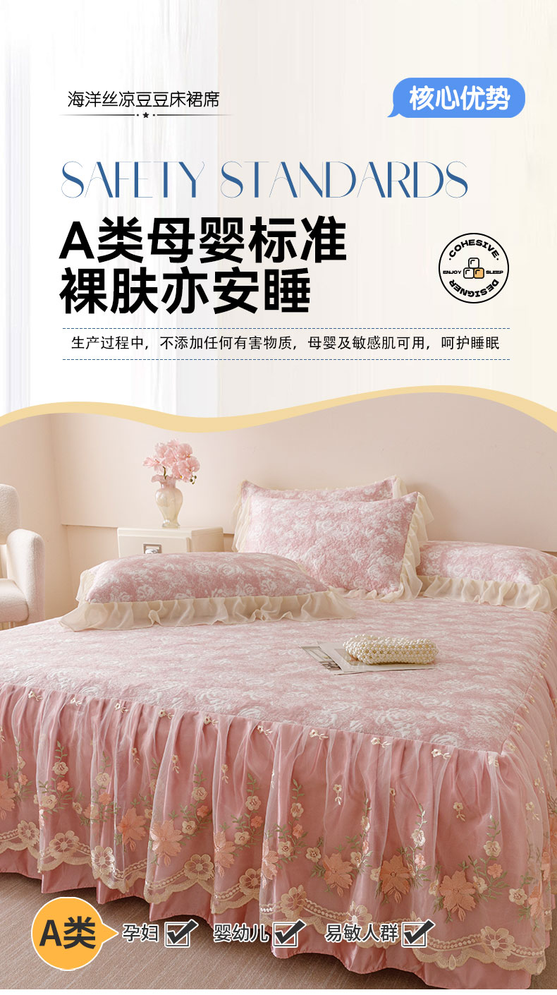 商品名称:(总)好儿喜家纺 2025新款海洋丝凉感豆豆床裙凉席-巴黎玫瑰