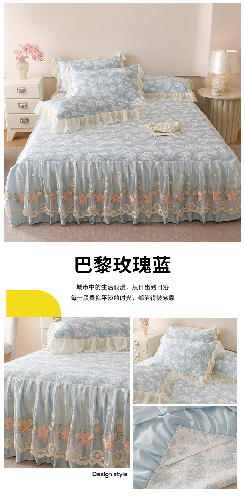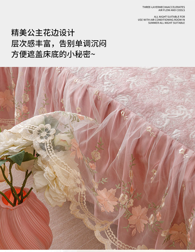 (总)好儿喜家纺 2024新款伊芙琳夏被凉席床裙四件套,浅绿,橄榄绿,奶白,浅粉,浅蓝