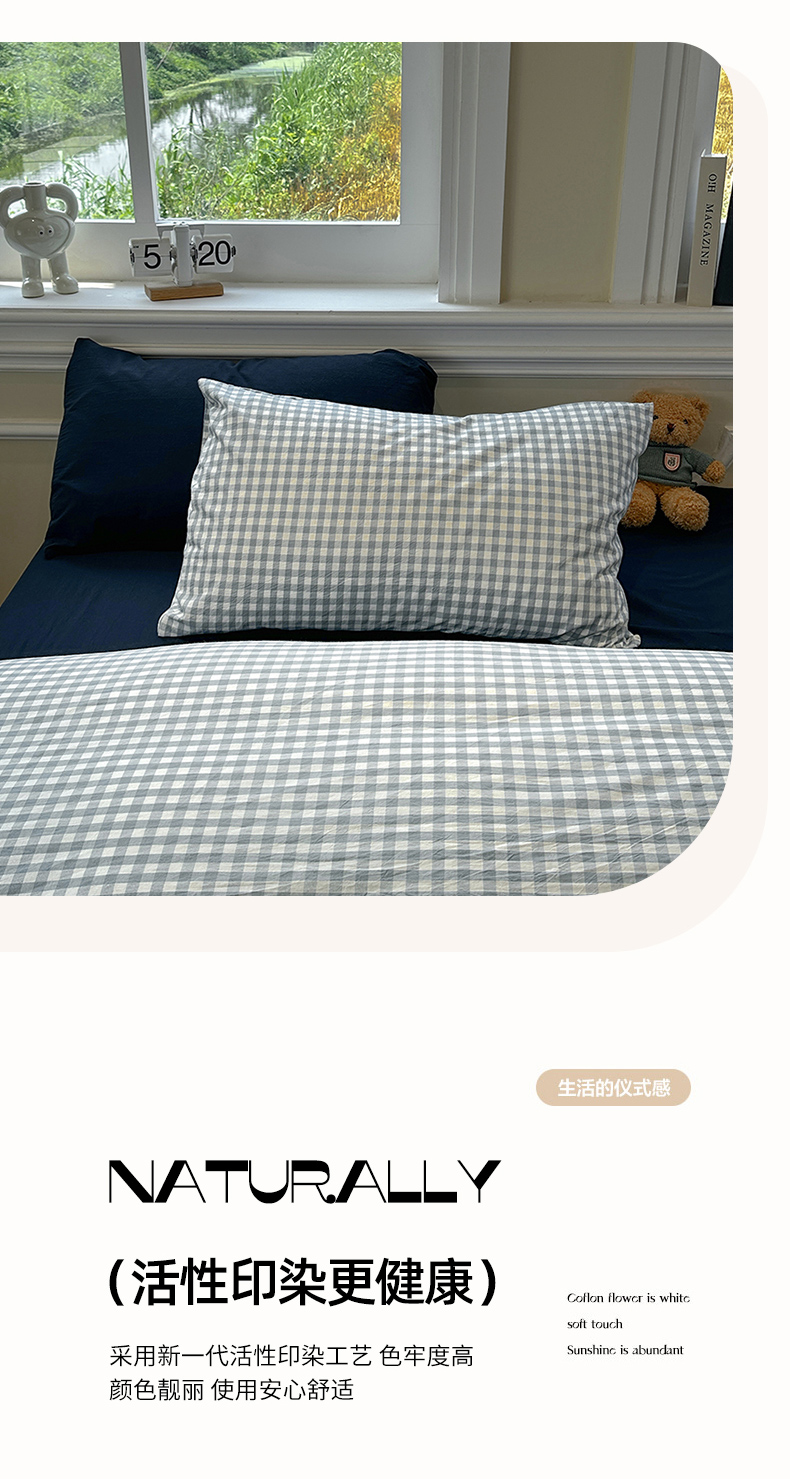 (总)欣晴家纺 2025新款软糯水洗棉条格无印宜家风混搭三件套四件套(风格2)