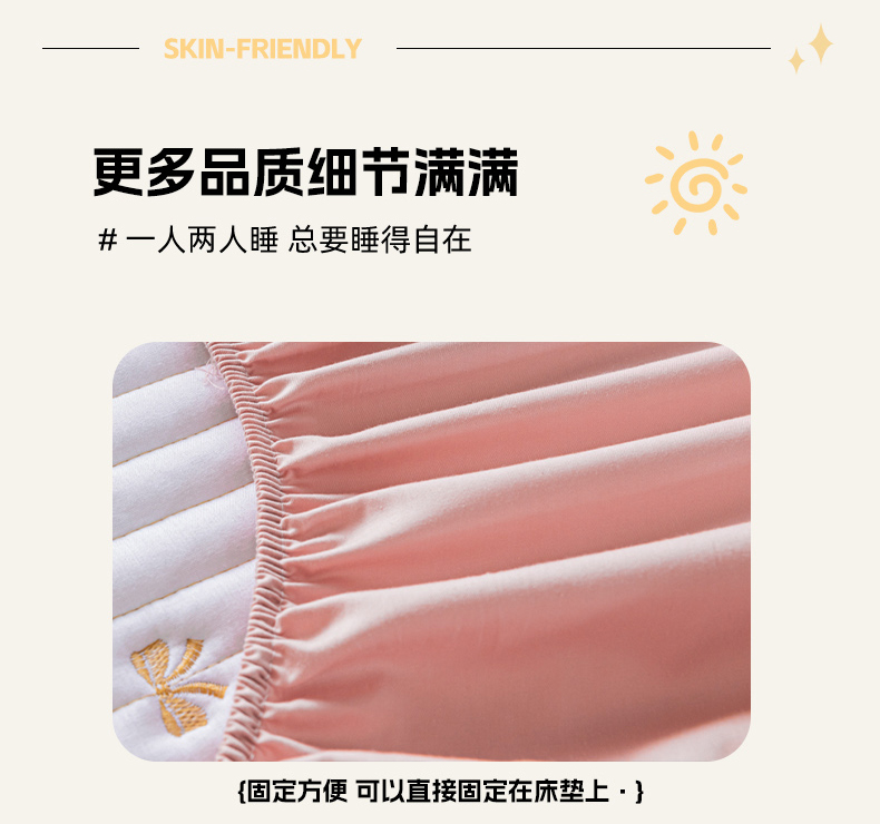 • 91家纺网 家纺一手货源 找家纺 暖季家纺 2025新款A类亲肤面料夹棉绣花床笠-不防水款 小蝴蝶结-粉-普通款