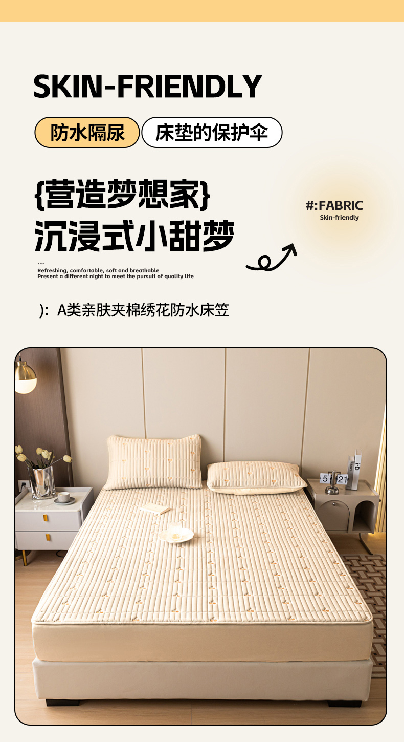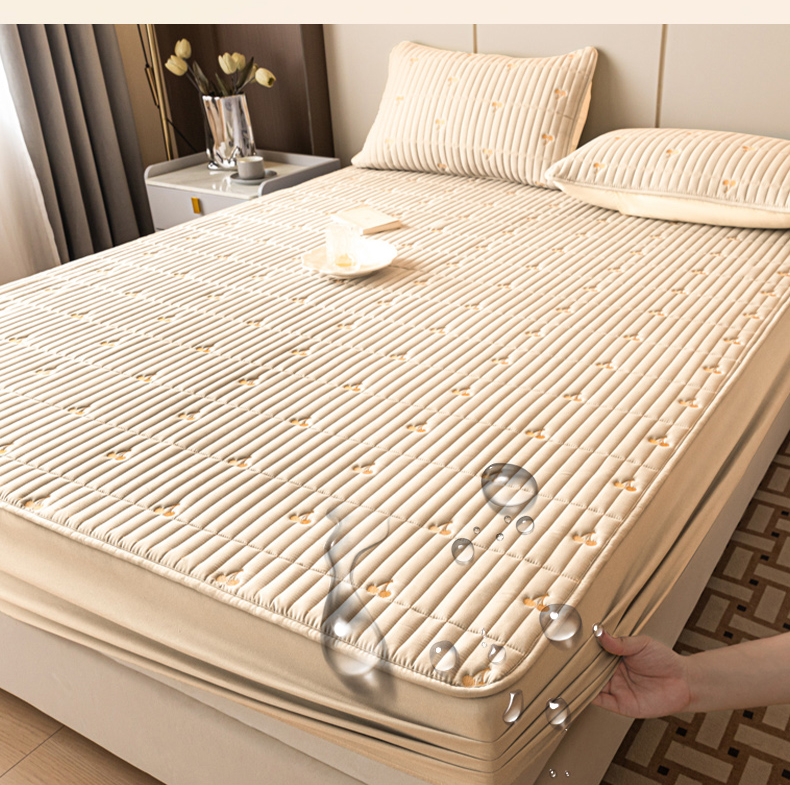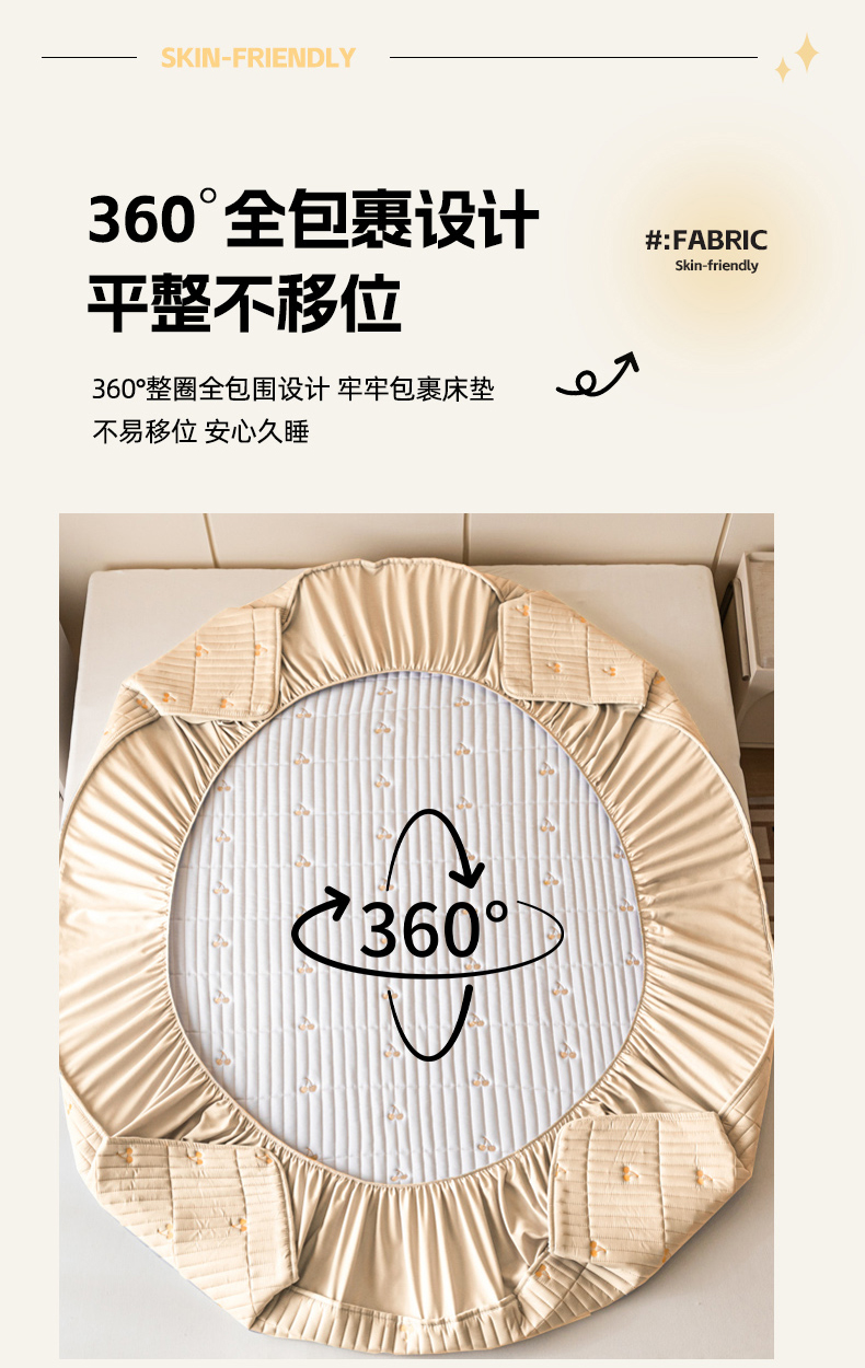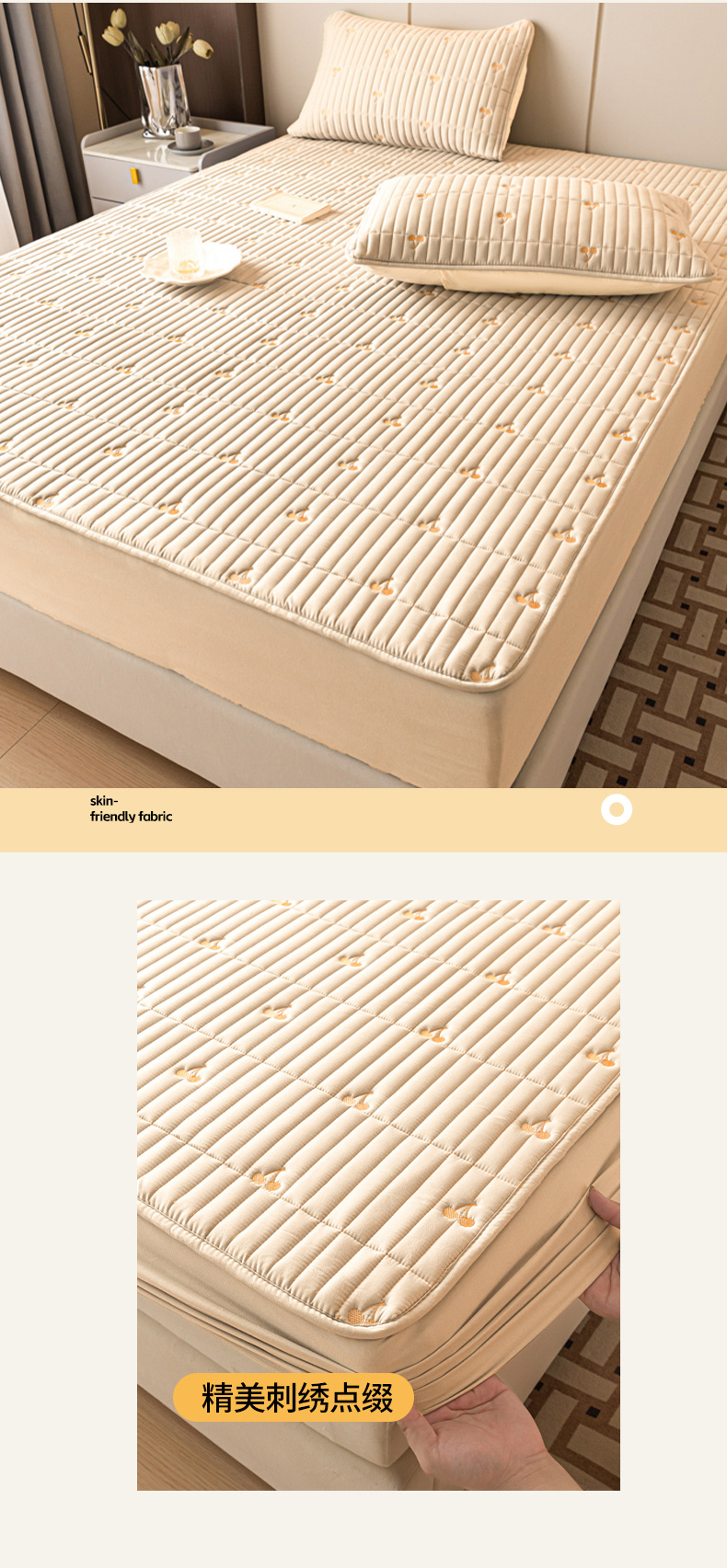 • 91家纺网 家纺一手货源 找家纺 暖季家纺 2025新款A类亲肤面料夹棉绣花床笠-不防水款 小樱桃-卡其-普通款