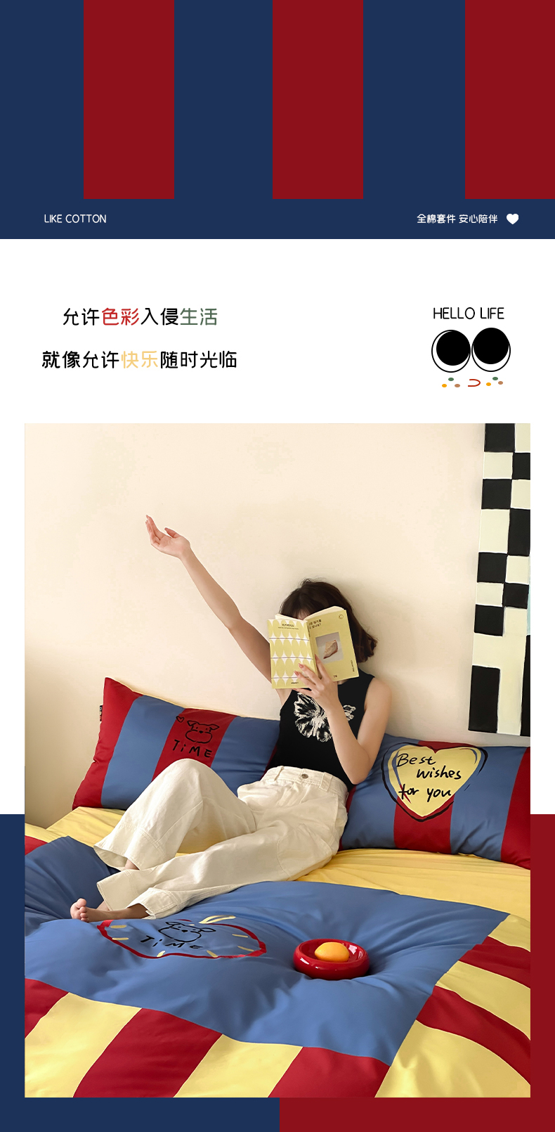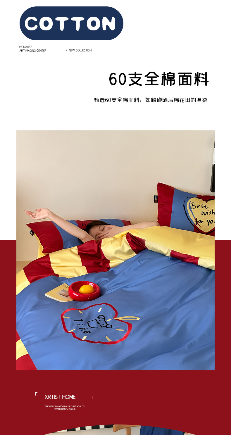 当前位置: 91家纺网 > 商品网购 > 床品套件 > 四件套 > 长绒棉四件套 > RYB红黄兰 2025新款孟菲斯系列60s长绒棉刺绣全棉数码印花四件套 蒙德里安小狗