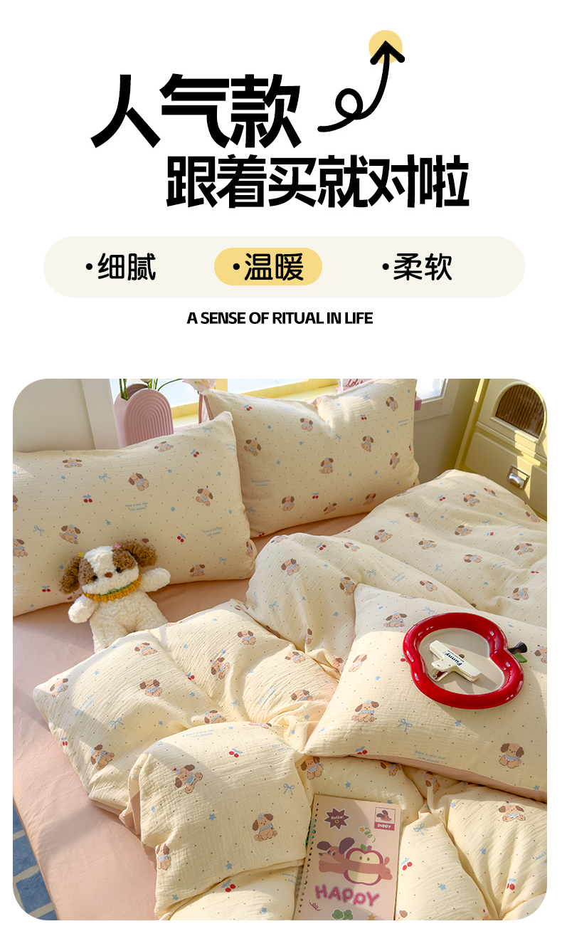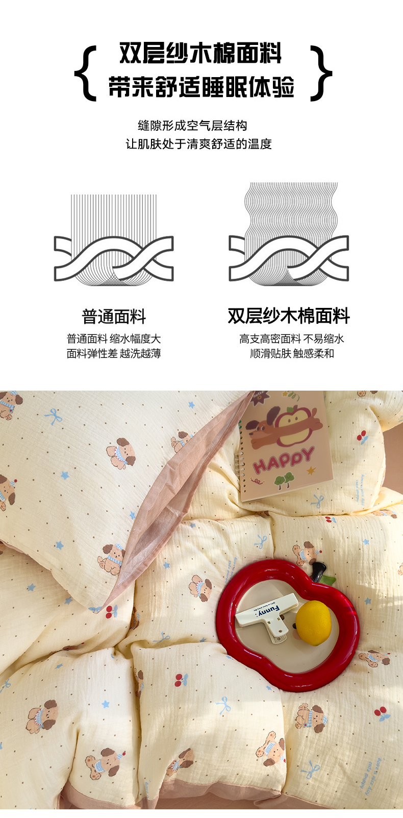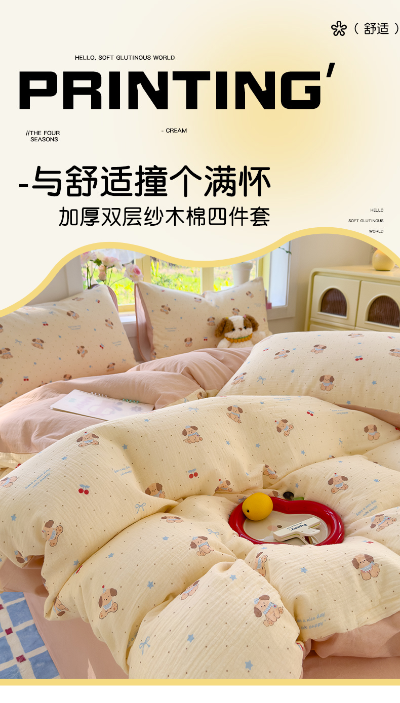 当前位置: 91家纺网 > 商品网购 > 床品套件 > 四件套 > 双层纱四件套 > 颜选2025新款105克加厚双层纱木棉四件套(含买家秀) 旺仔小樱桃