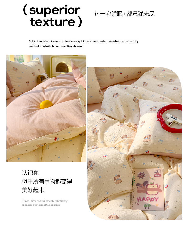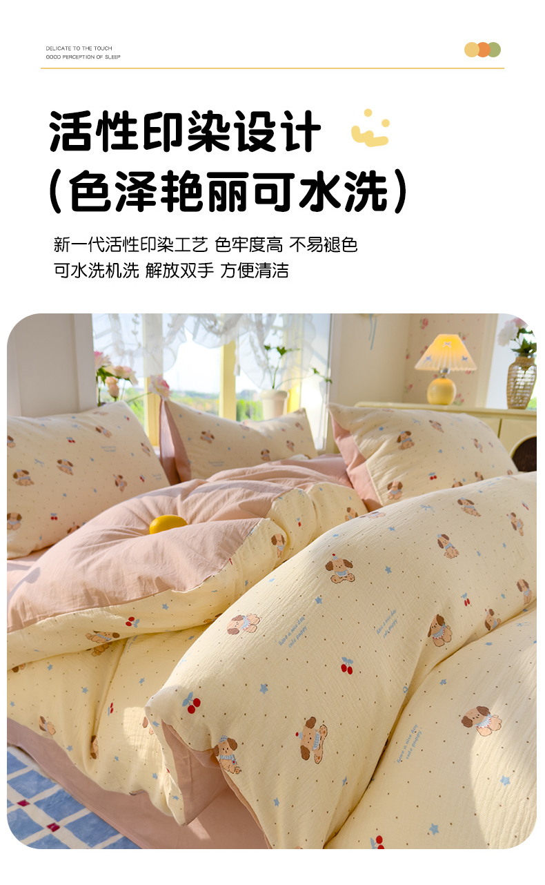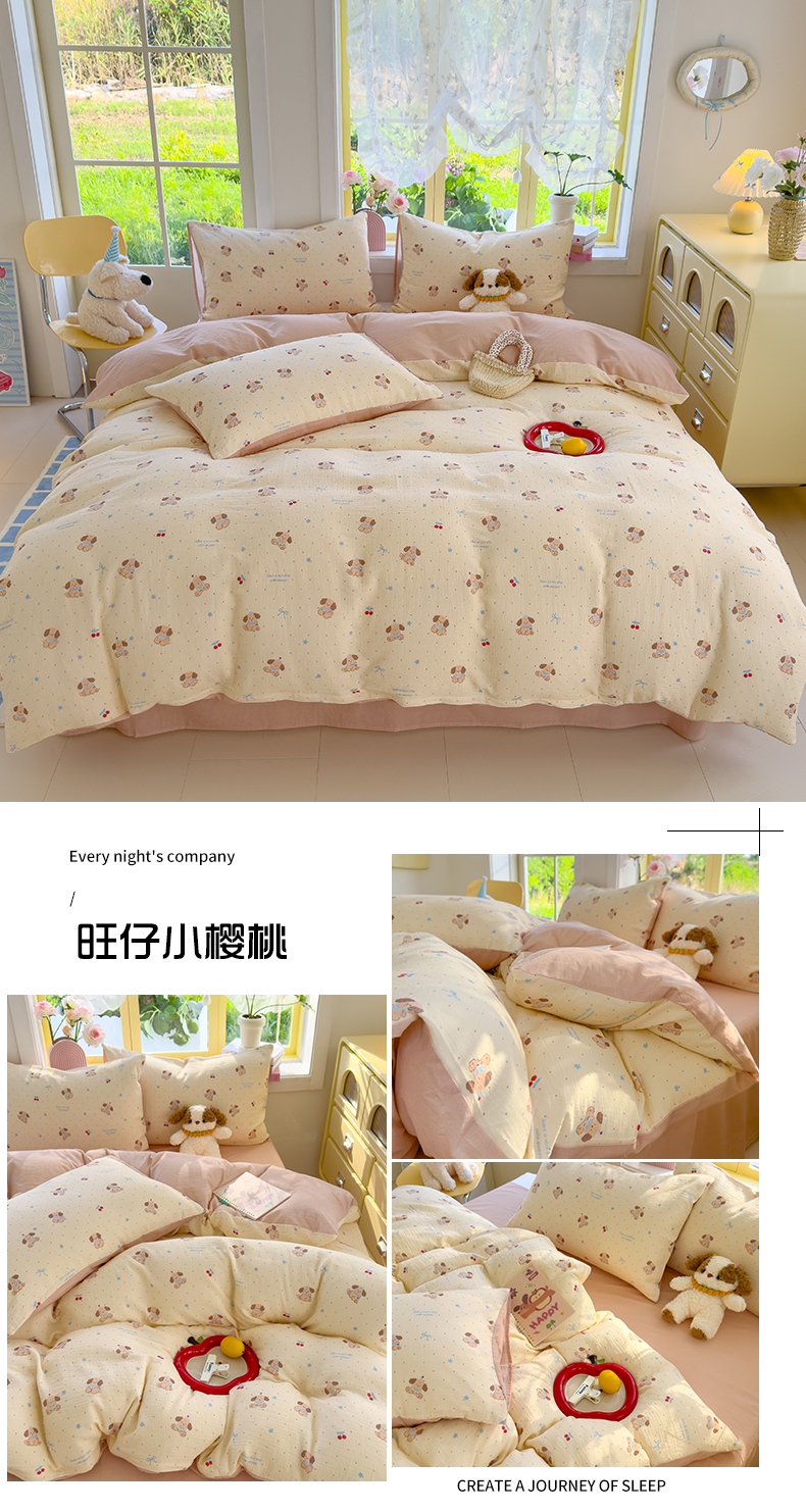 当前位置: 91家纺网 > 商品网购 > 床品套件 > 四件套 > 双层纱四件套 > 颜选2025新款105克加厚双层纱木棉四件套(含买家秀) 旺仔小樱桃