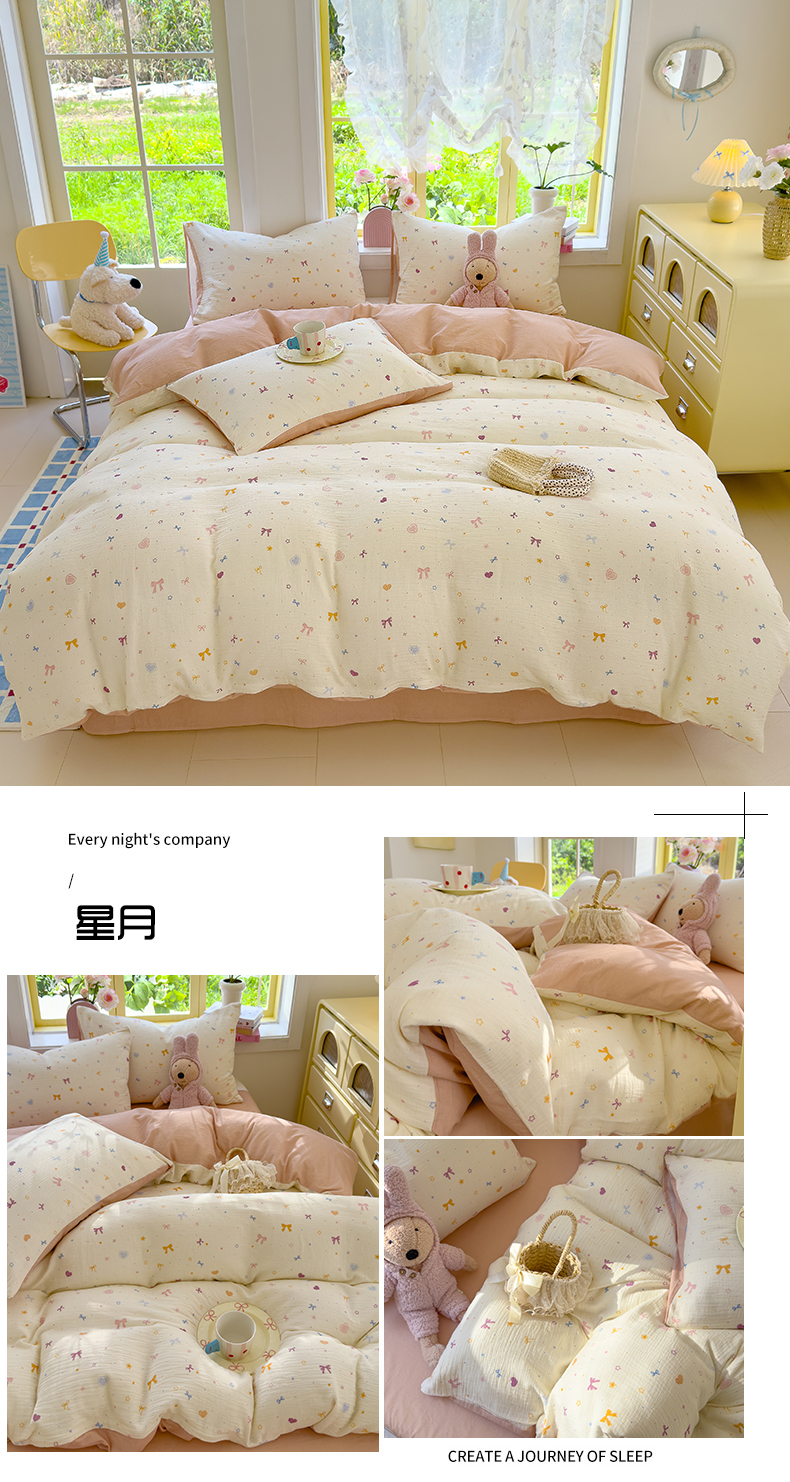 当前位置: 91家纺网 > 商品网购 > 床品套件 > 四件套 > 双层纱四件套 > 颜选2025新款105克加厚双层纱木棉四件套(含买家秀) 星月