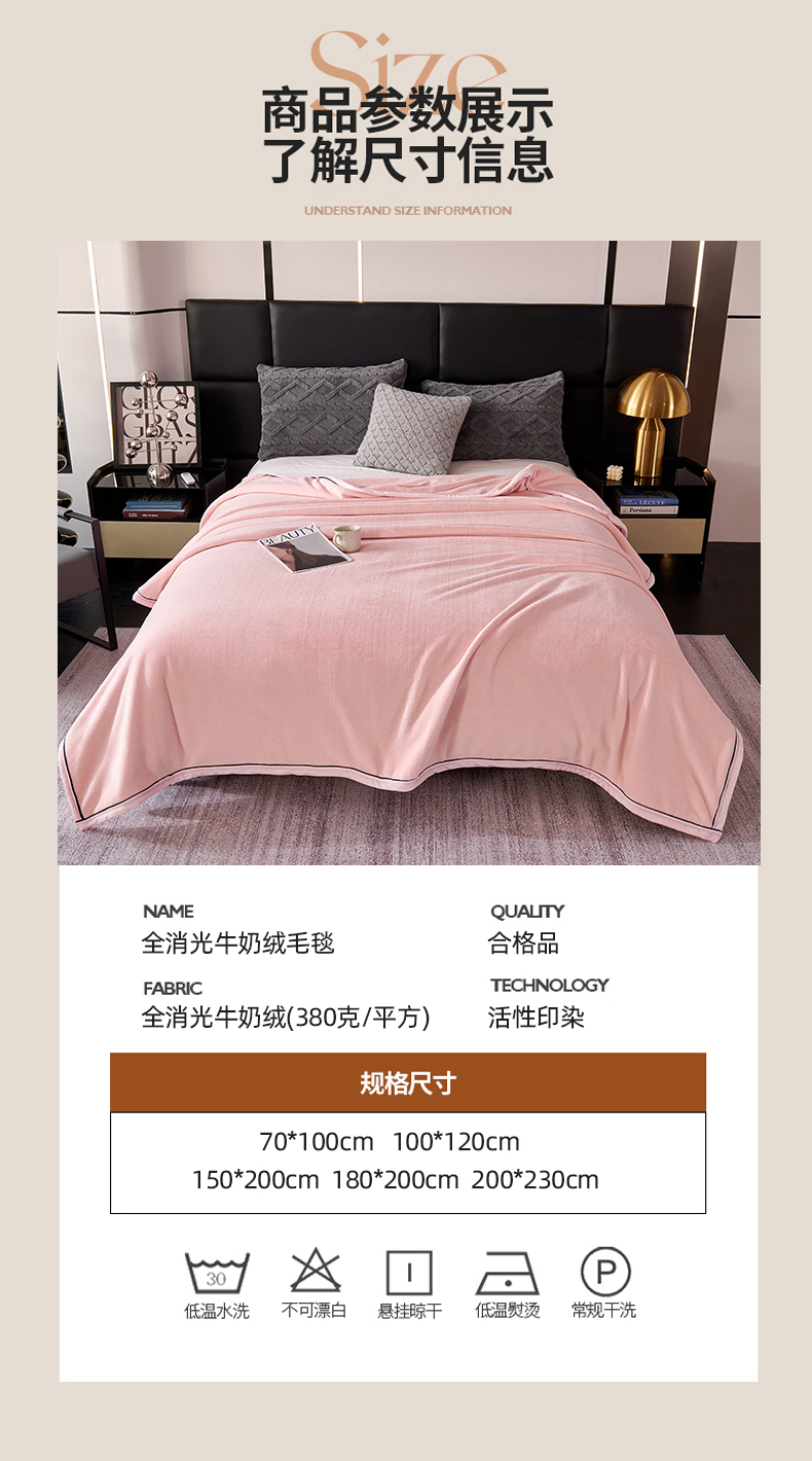 商品名称:馨米莱家纺 2025新款全消光牛奶绒毛毯 玉粉色