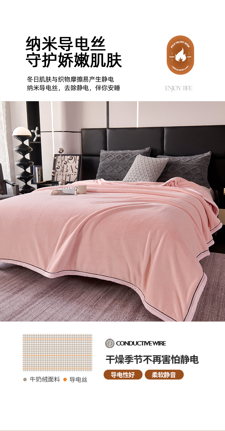 馨米莱家纺 2025新款全消光牛奶绒毛毯 玉粉色