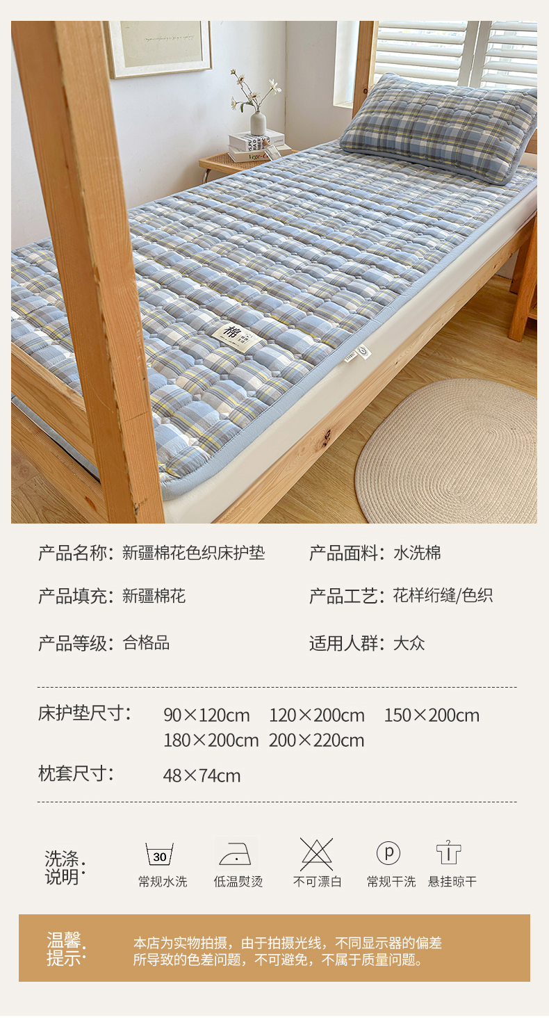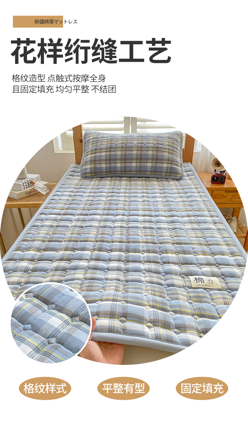 • 91家纺网 家纺一手货源 找家纺 梵朴 2025新款A类无印风水洗棉夹棉新疆棉花宿舍学生床垫床护垫 浅灰