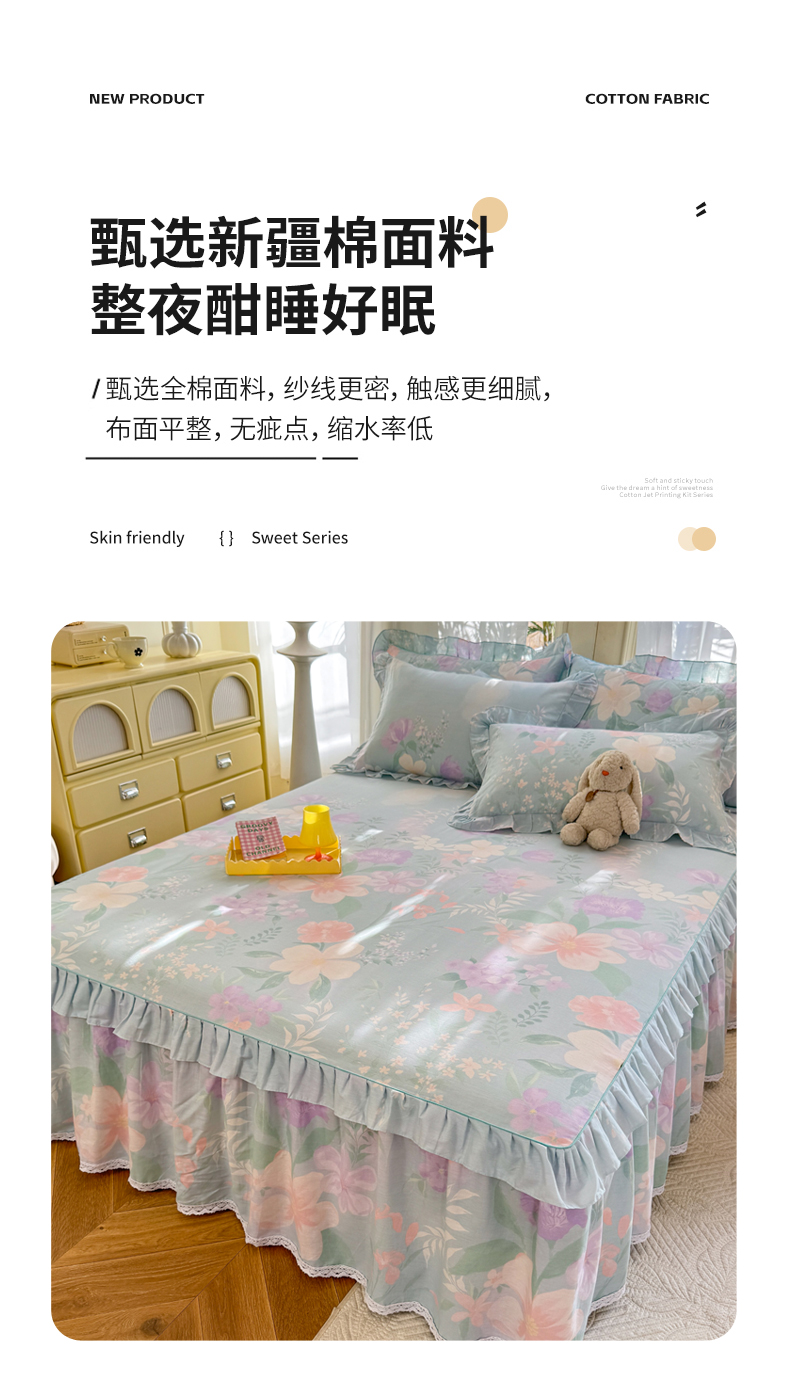 (总)美达家纺 2025新款全棉AB版单层床裙,解语花,南湘,沁雨花叶,悦棠