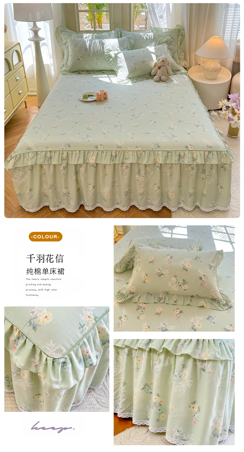 商品名称:美达家纺 2025新款全棉纯棉蕾丝小花边单层床裙单品床裙床裙单件 千羽花信