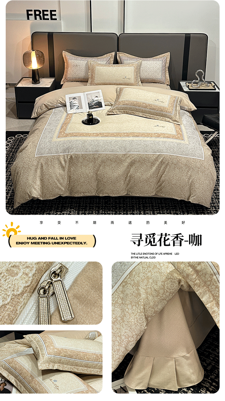 喜四方 2025新款加厚全棉大版印花四件套 寻觅花香-咖