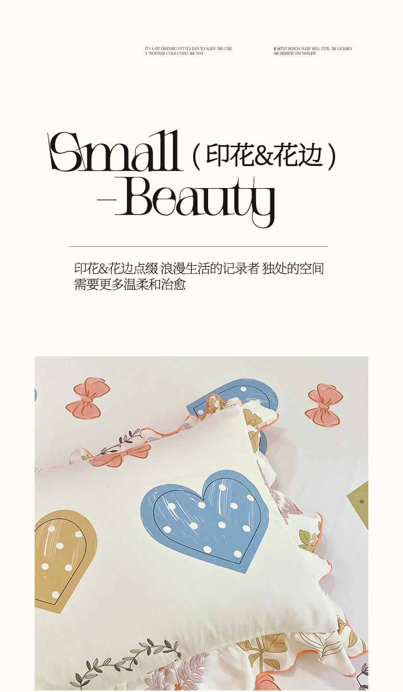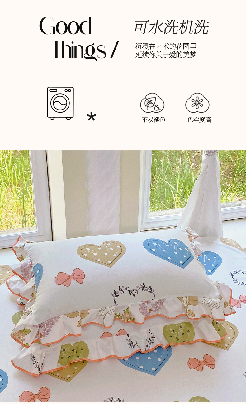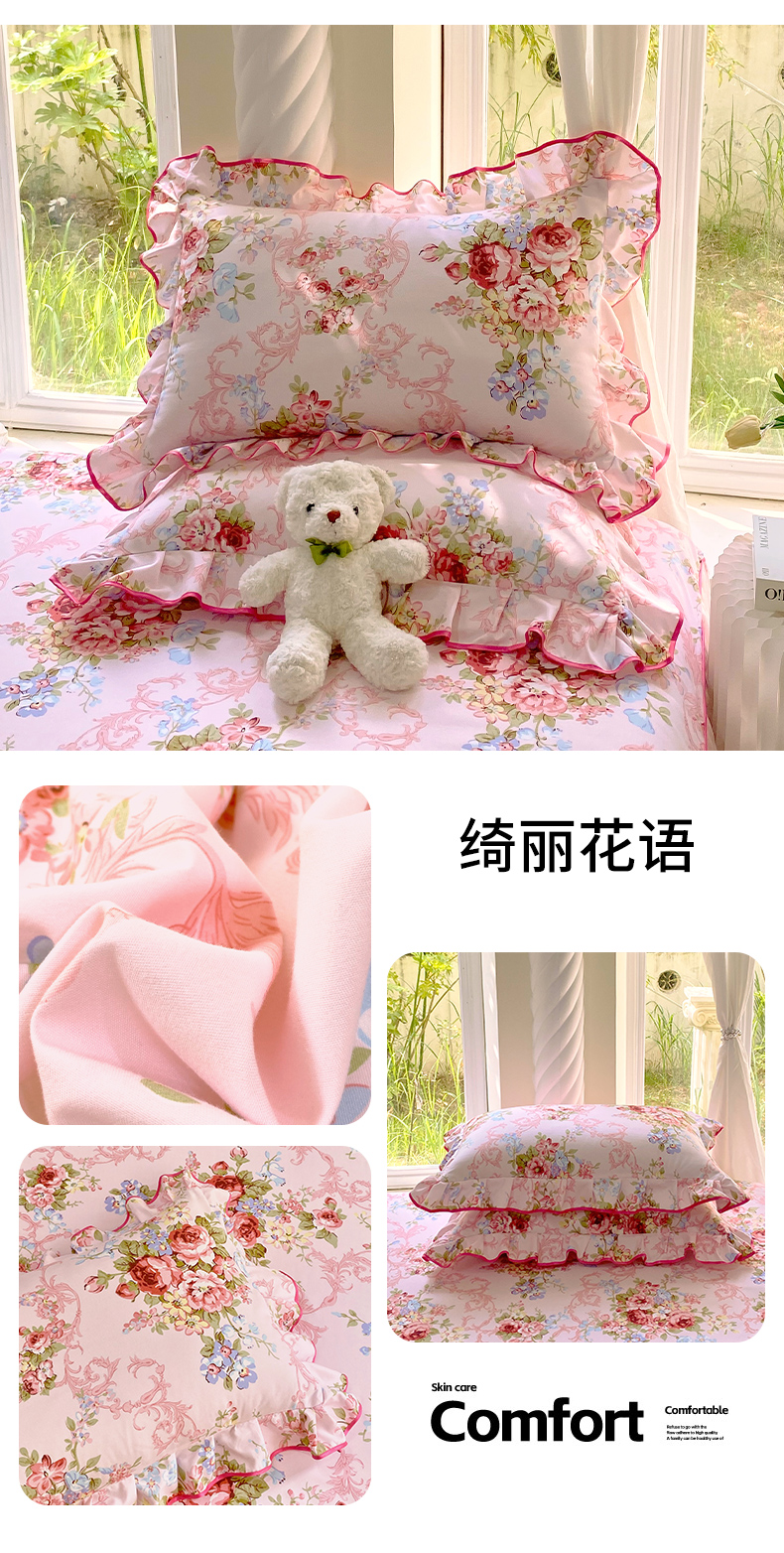 商品名称:雨彤家纺 2025新款韩式公主风亲肤斜纹枕套 公主风-恬心爱恋