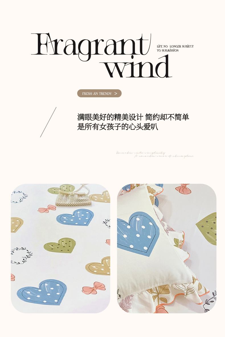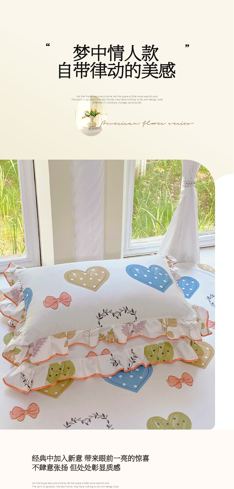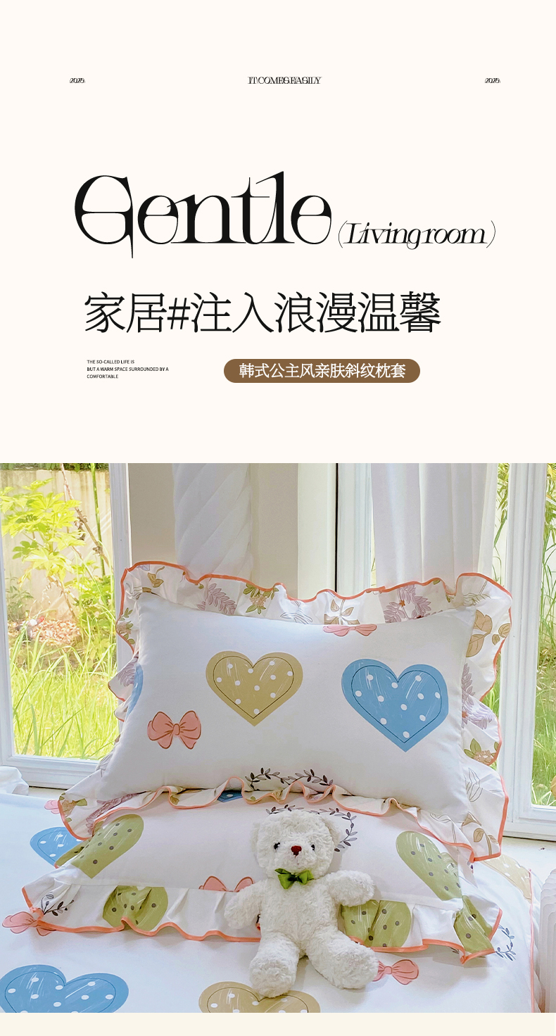 商品名称:雨彤家纺 2025新款韩式公主风亲肤斜纹枕套 公主风-恬心爱恋