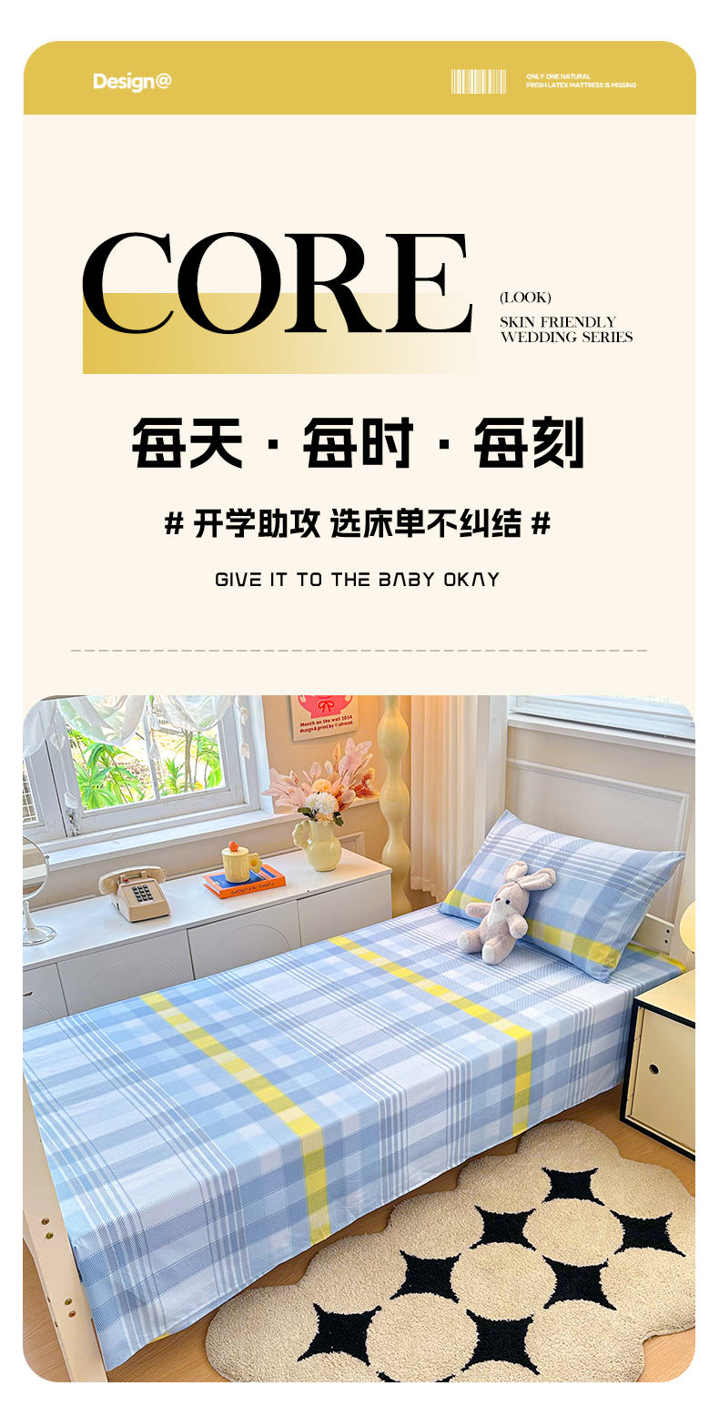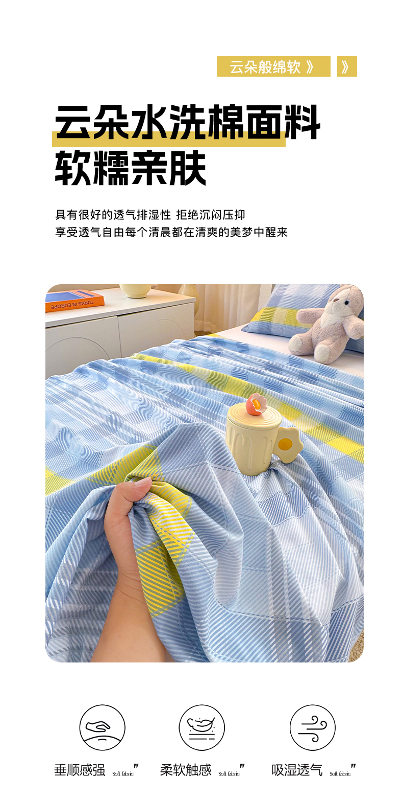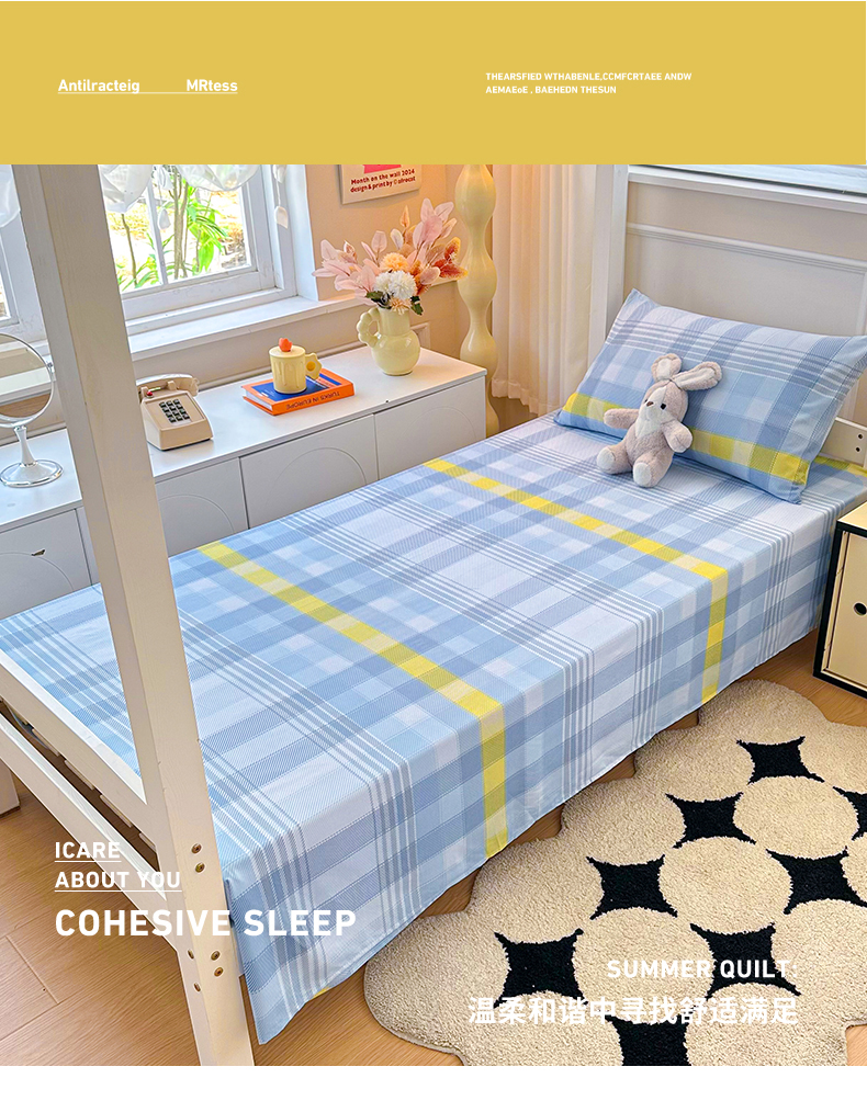 • 91家纺网 家纺一手货源 找家纺 雨彤家纺 2025条纹水洗棉学生宿舍床单单床单床单单件 安格尔-蓝