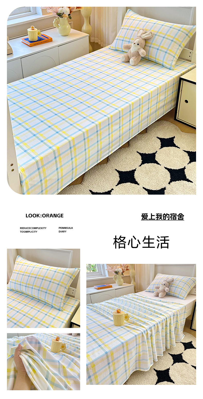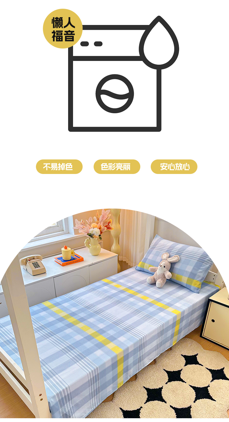 雨彤家纺 2025条纹水洗棉学生宿舍床单单床单床单单件 安格尔-蓝