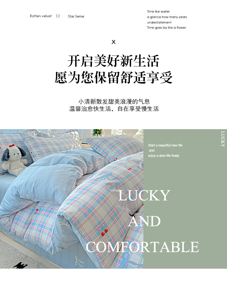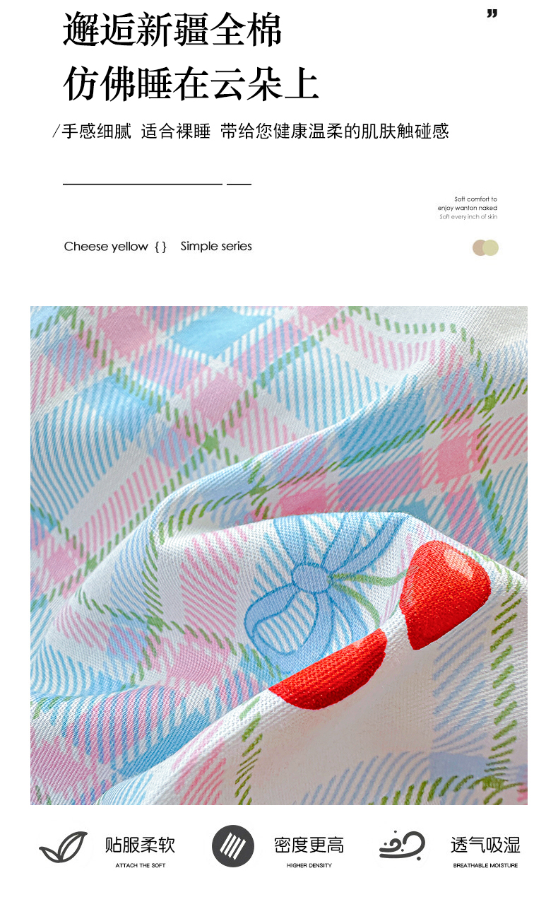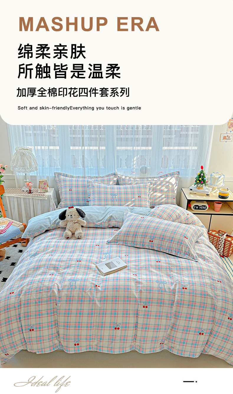 当前位置: 91家纺网 > 商品网购 > 床品套件 > 四件套 > 全棉普通四件套 > 恩泽家纺 2025新款全棉纯棉12868喷气印花系列四件套-第二批 樱桃派