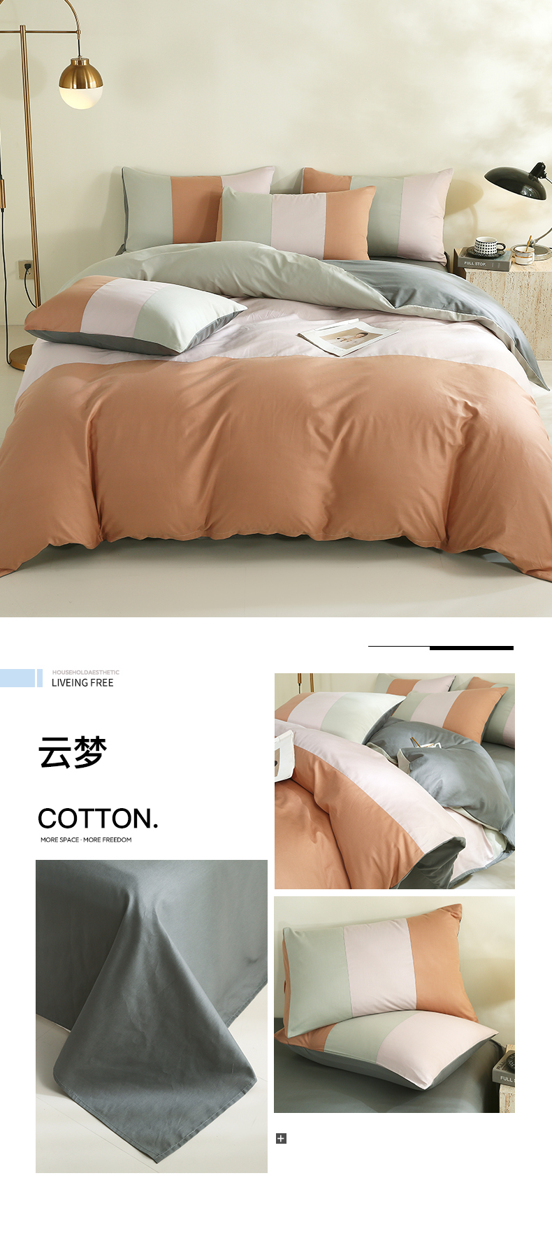 商品名称:(总)金鑫汇家纺 2026新款全棉纯棉纯色拼色四件套