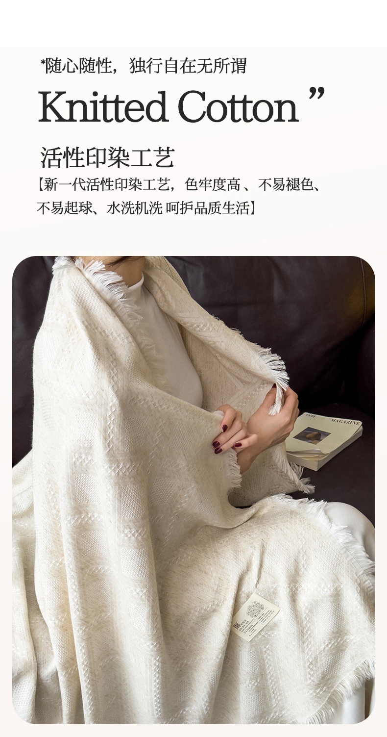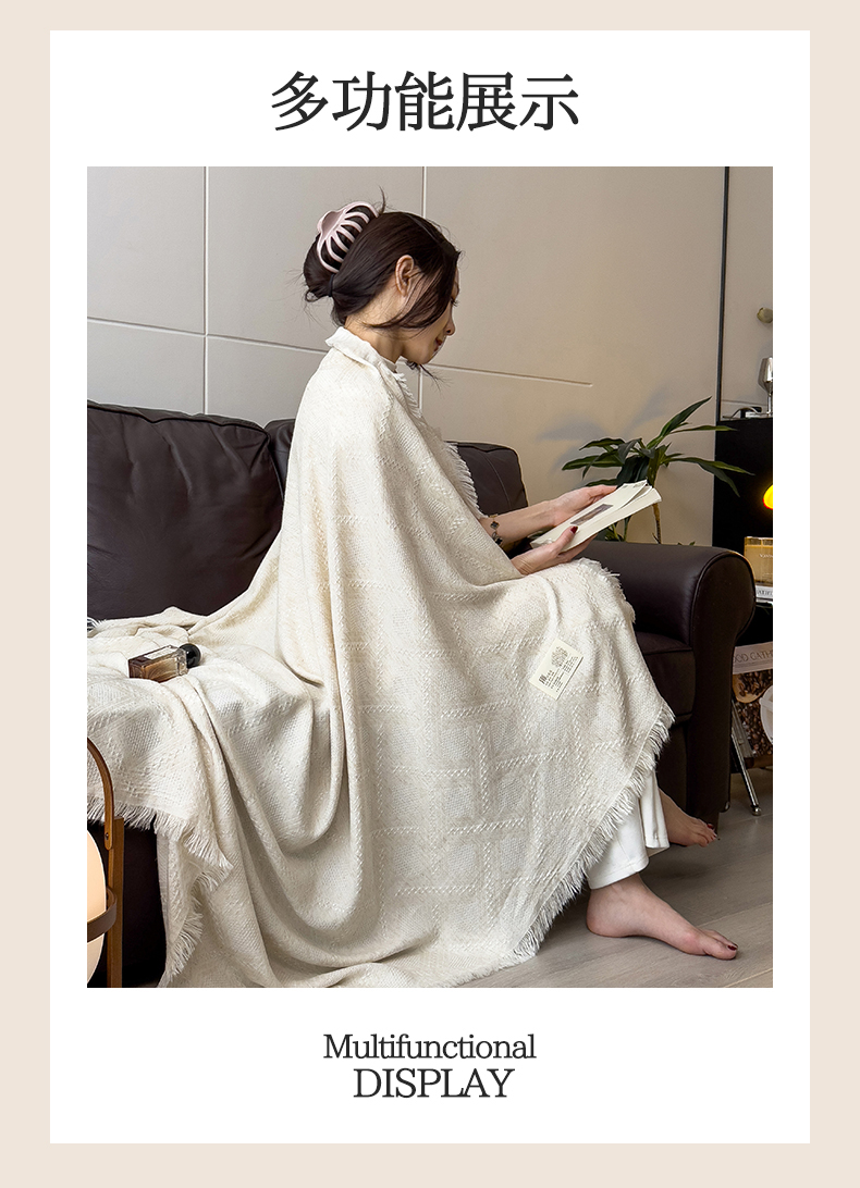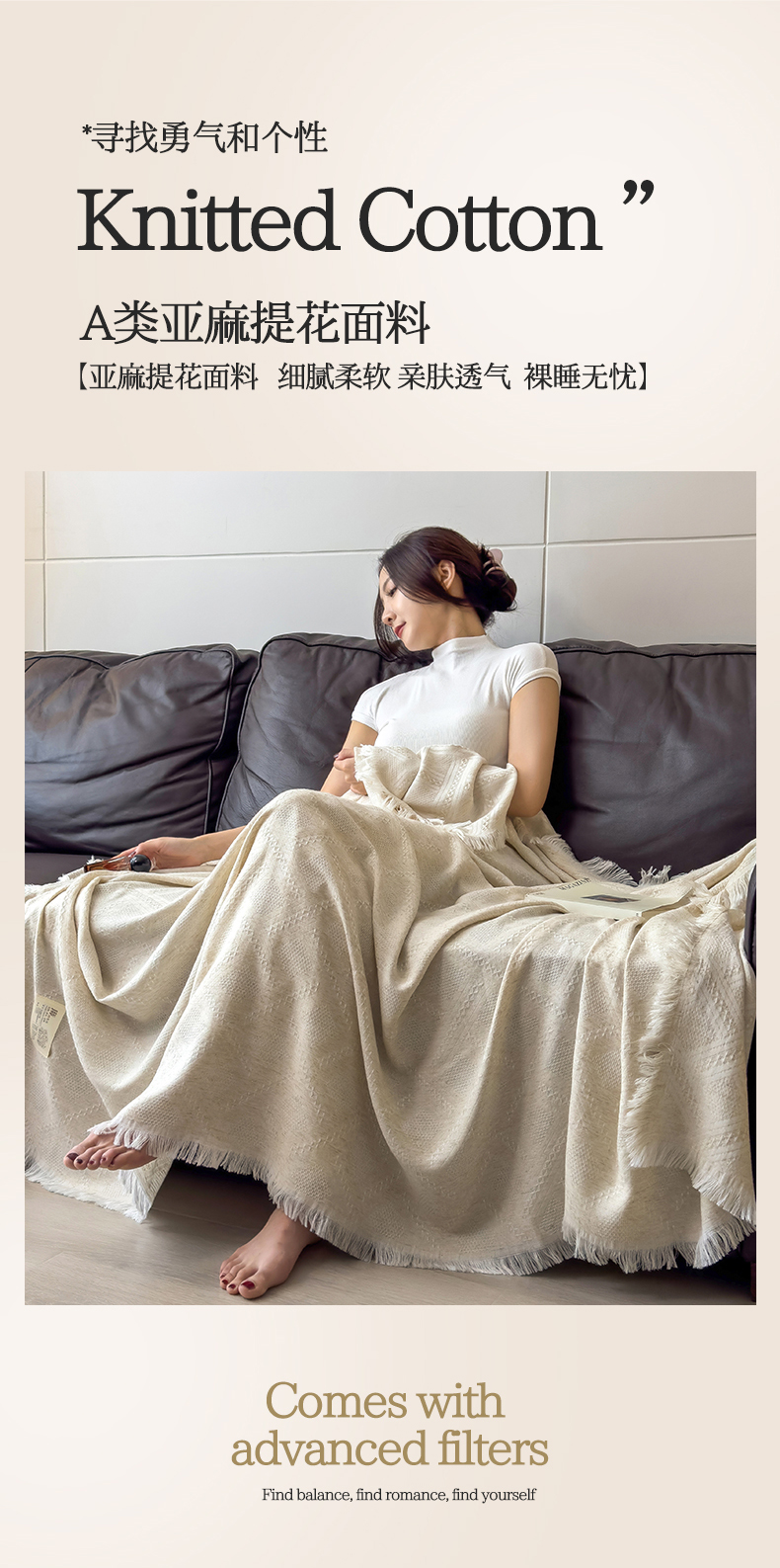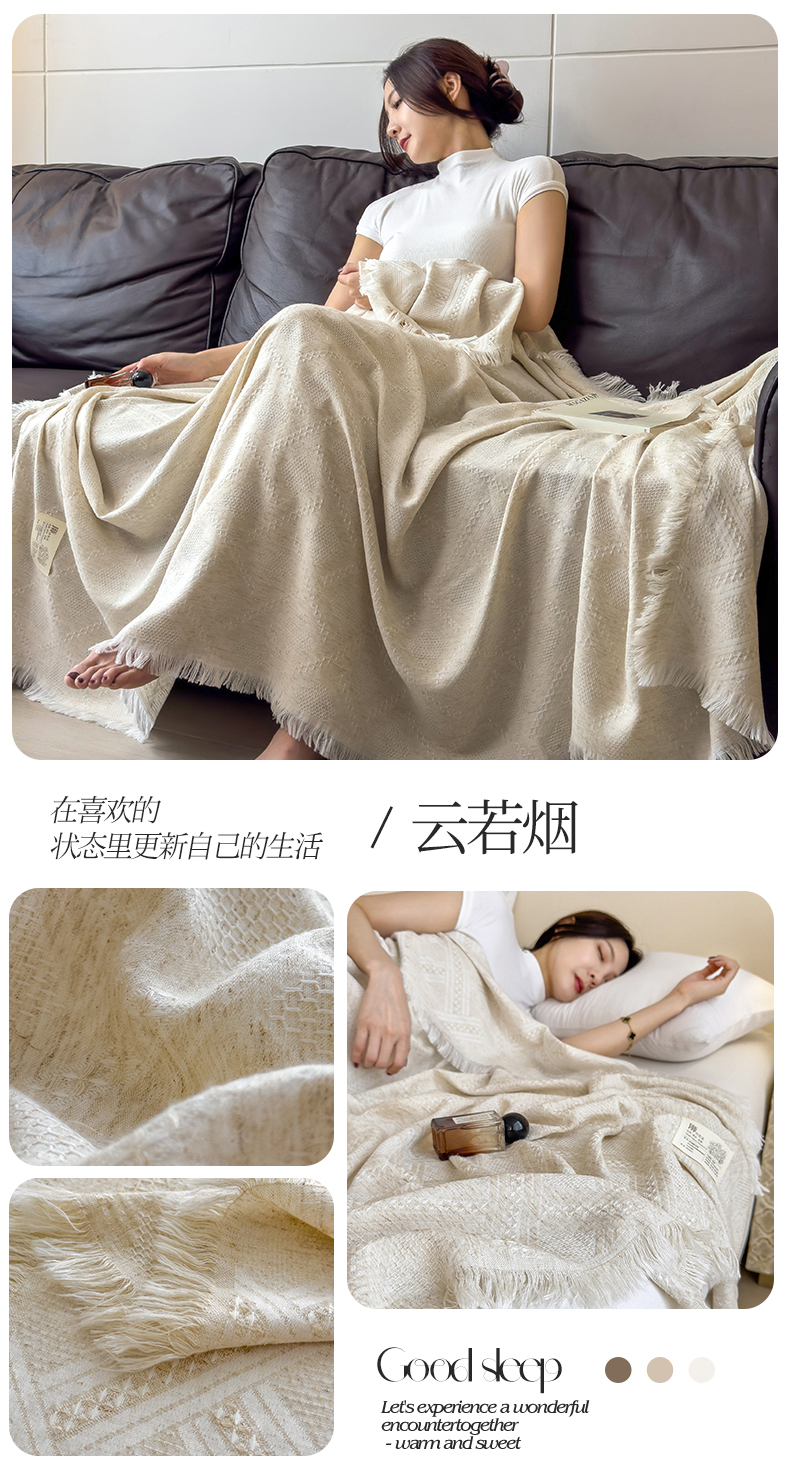 商品名称:米菲 2025新款A类亚麻提花多功能盖毯毯子毛毯 云若烟