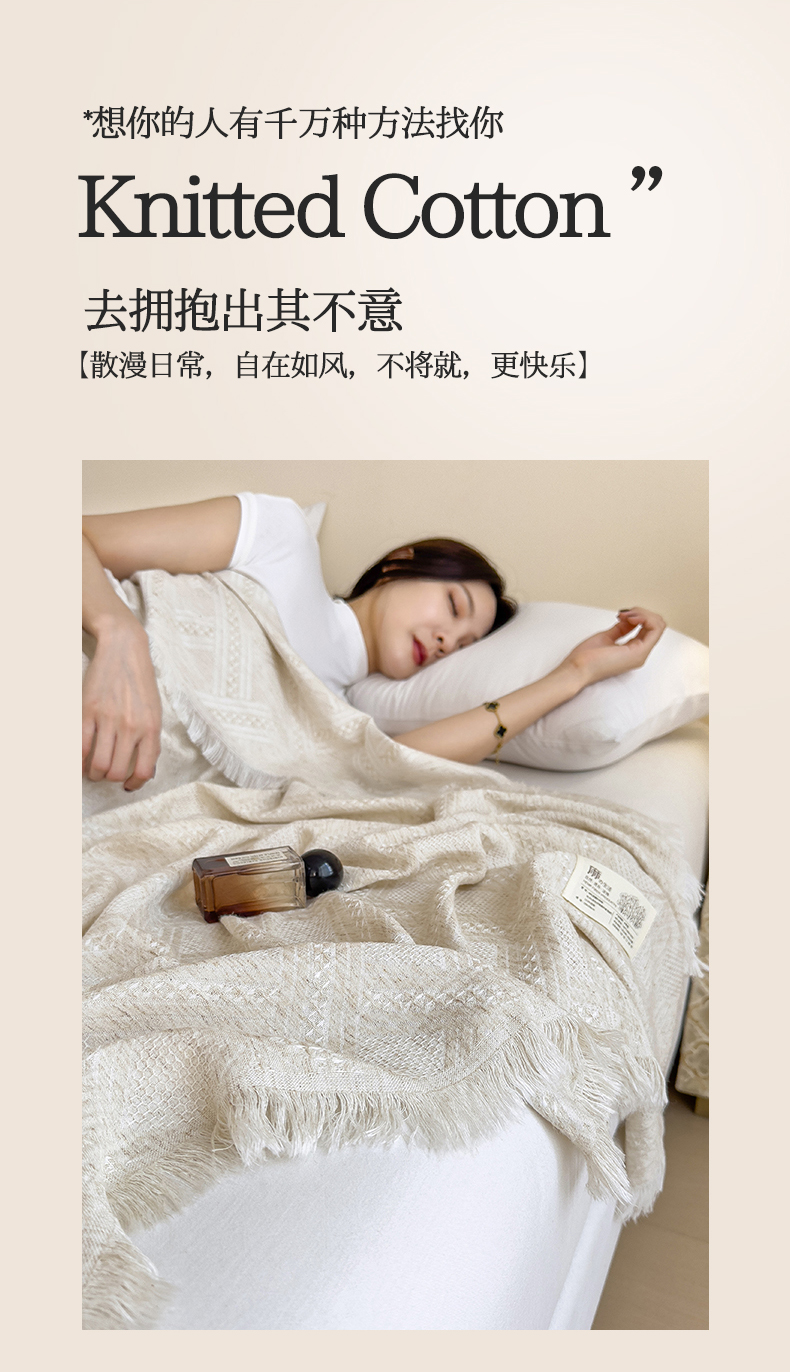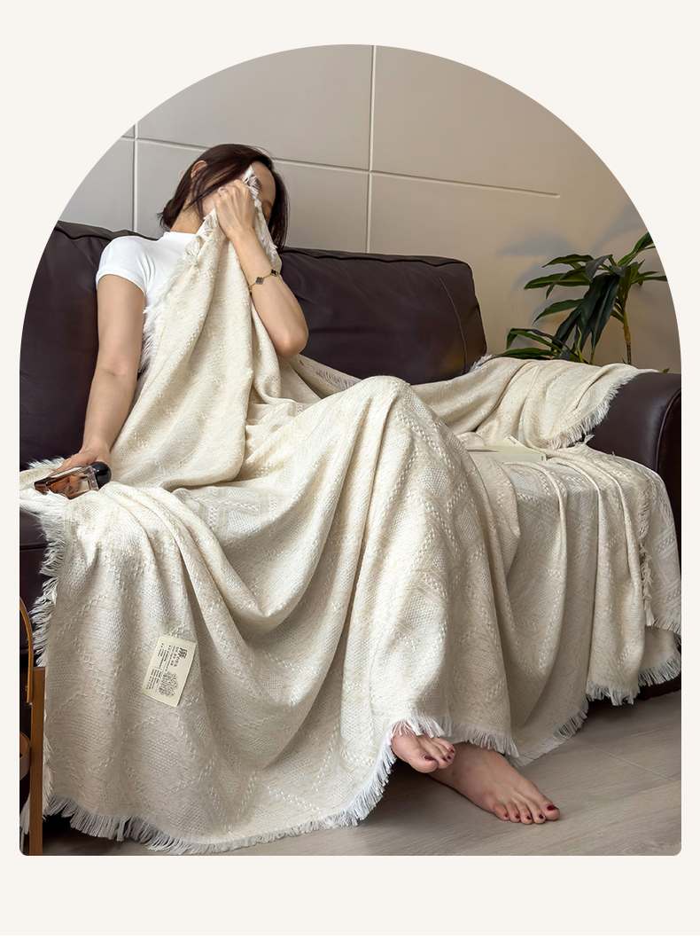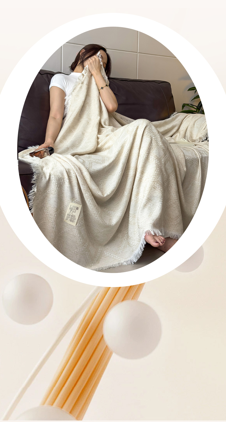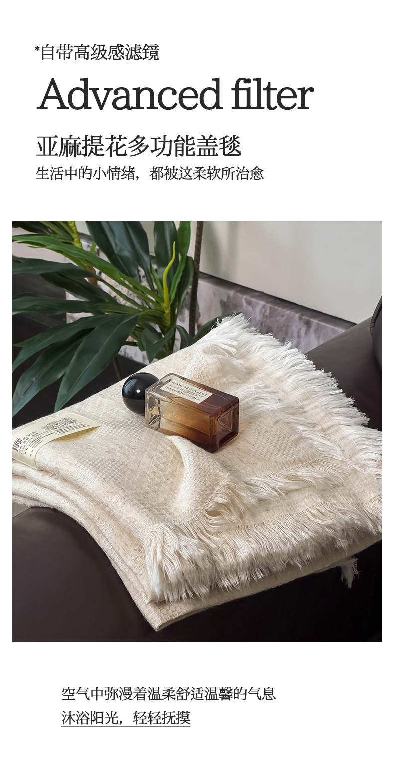 米菲 2025新款A类亚麻提花多功能盖毯毯子毛毯 云若烟