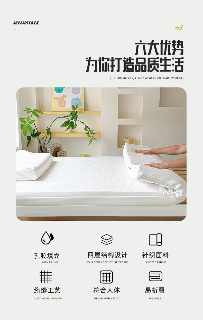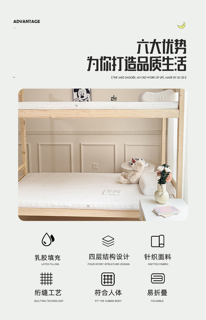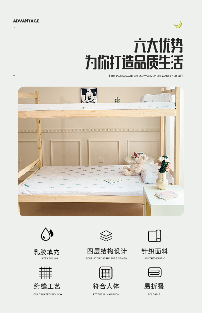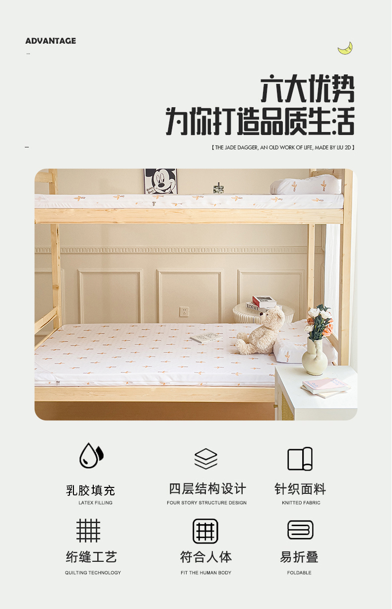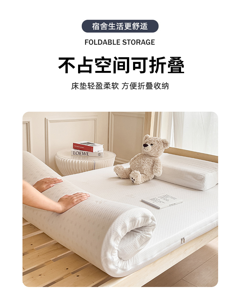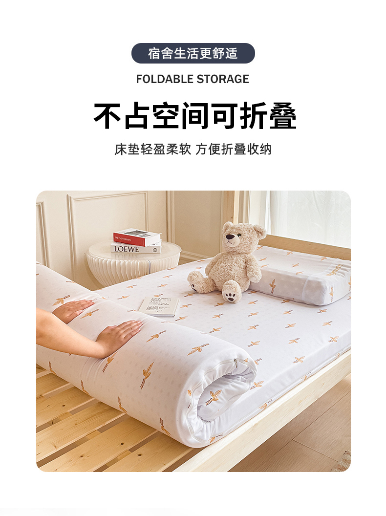 商品名称:(总)美丽折家纺 2025新款泰国天然乳胶学生床垫 宿舍上下铺褥子可拆卸纯乳胶床垫
