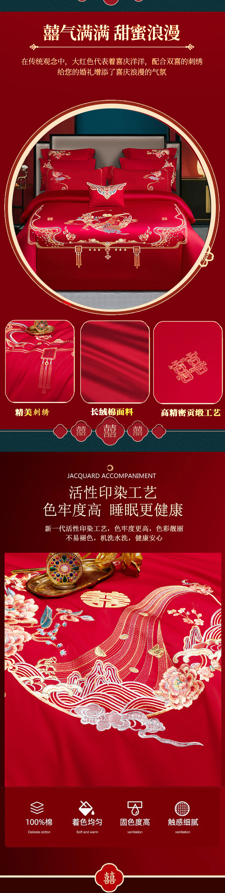 当前位置: 91家纺网 > 商品网购 > 床品套件 > 四件套 > 婚庆四件套 > 柏拉图 2025新款100s贡缎长绒棉提花婚庆系列四件套多件套 喜事连连