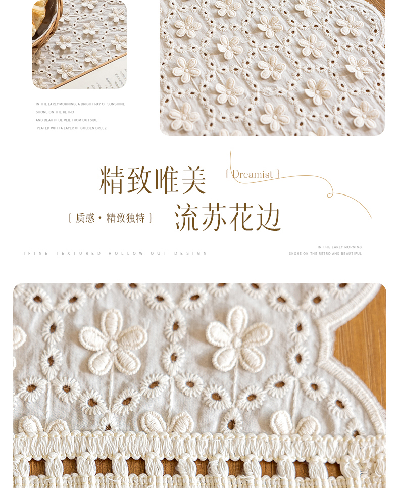 当前位置: 91家纺网 > 商品网购 > 床品定制 > 桌布/桌旗定制定做 > 南通大梧纺织 2025新款全棉纯棉绣花法式复古全棉朵朵桌旗 全棉朵朵 33x240cm