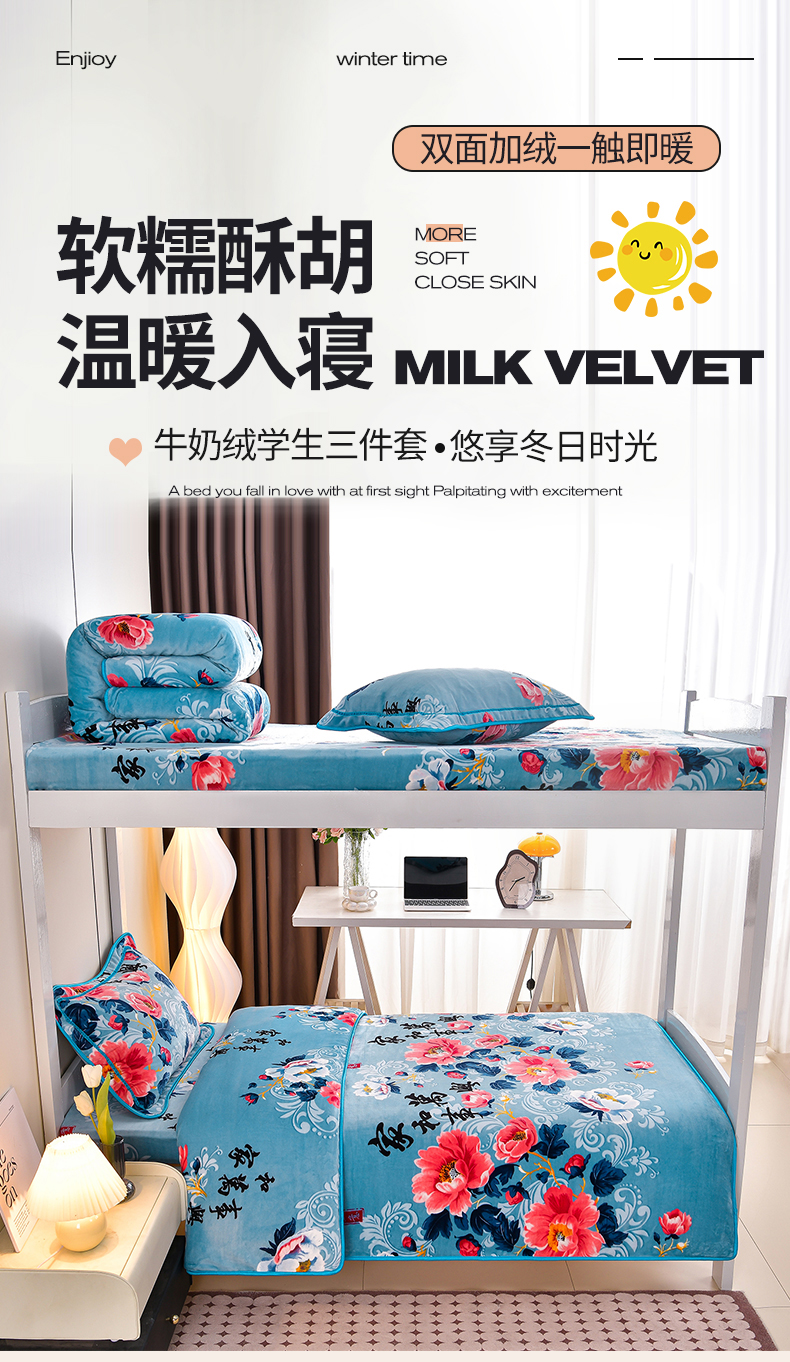 (总)缘莉娜家纺 2025新款牛奶绒印花学生宿舍三件套上下铺三件套,人生格言,致青春,抱抱熊,玫瑰的故事,海阔天空,兔兔乐园,家和万事兴,翩翩起舞,鹿上时空,甜蜜蜜,一路相伴,如花似锦