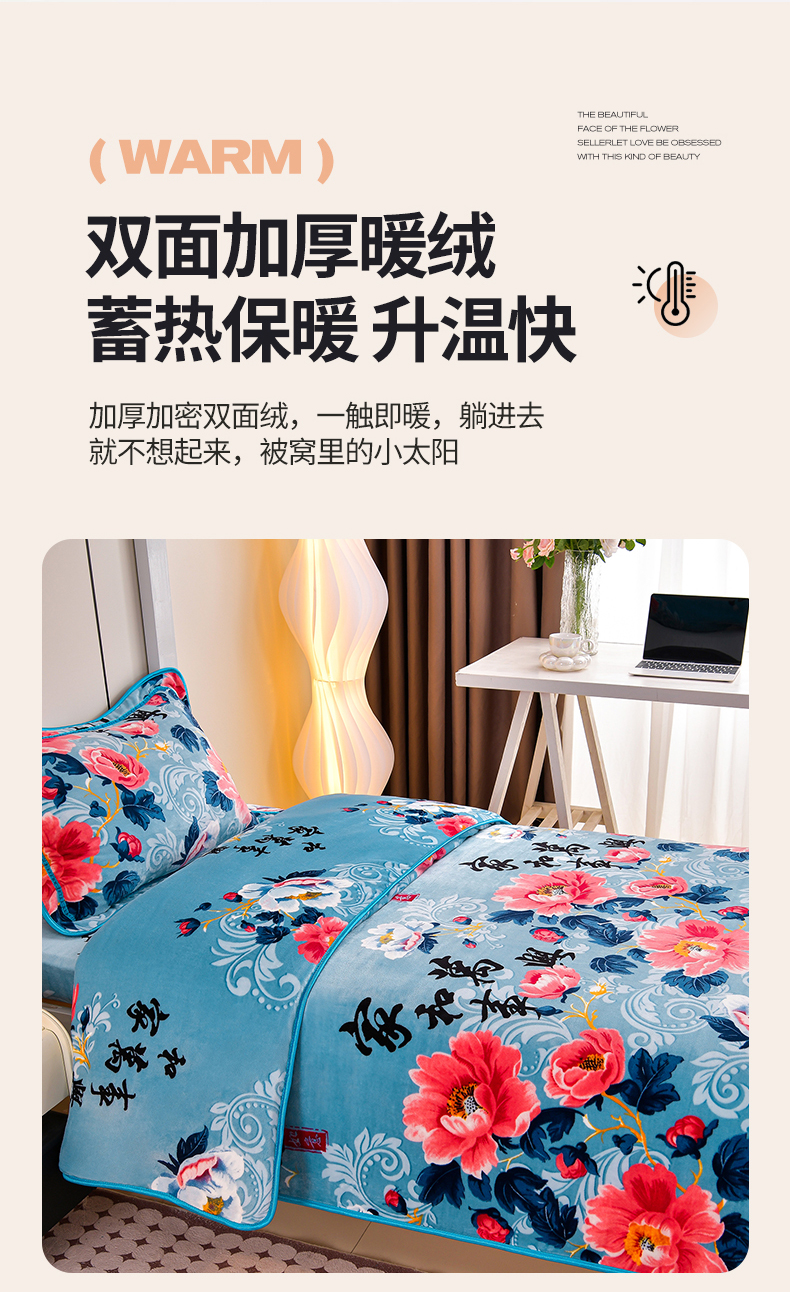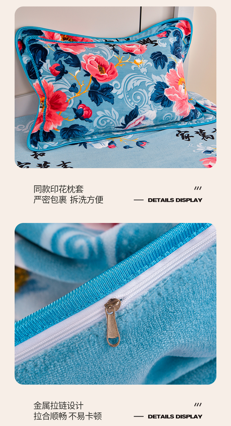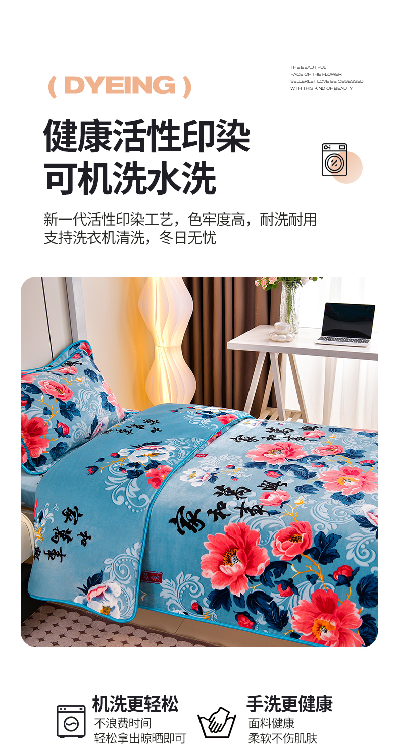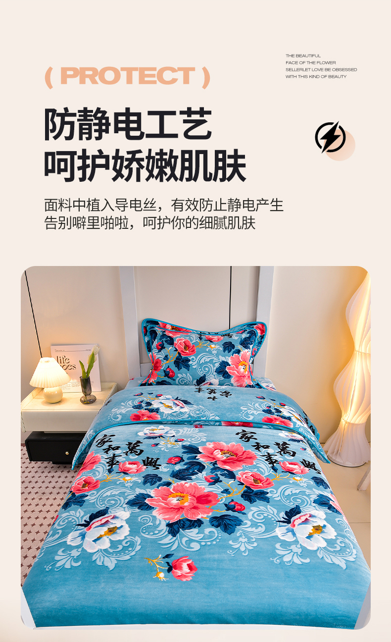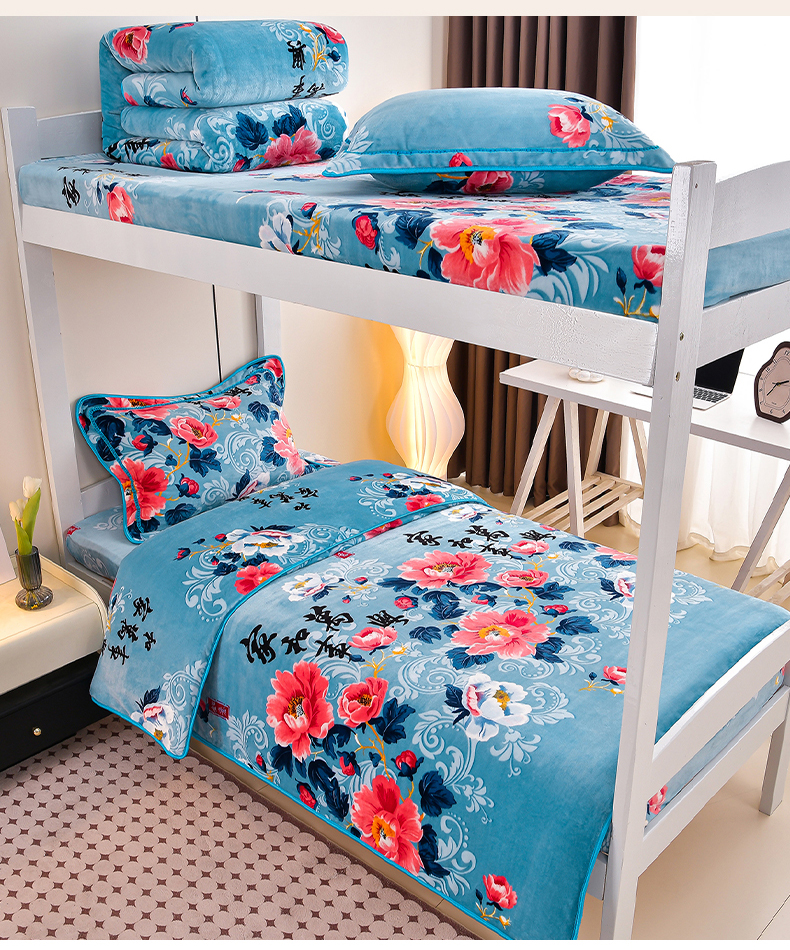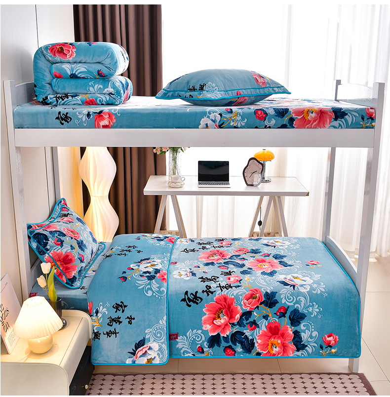 商品名称:缘莉娜家纺 2025新款牛奶绒印花学生宿舍三件套上下铺三件套 家和万事兴