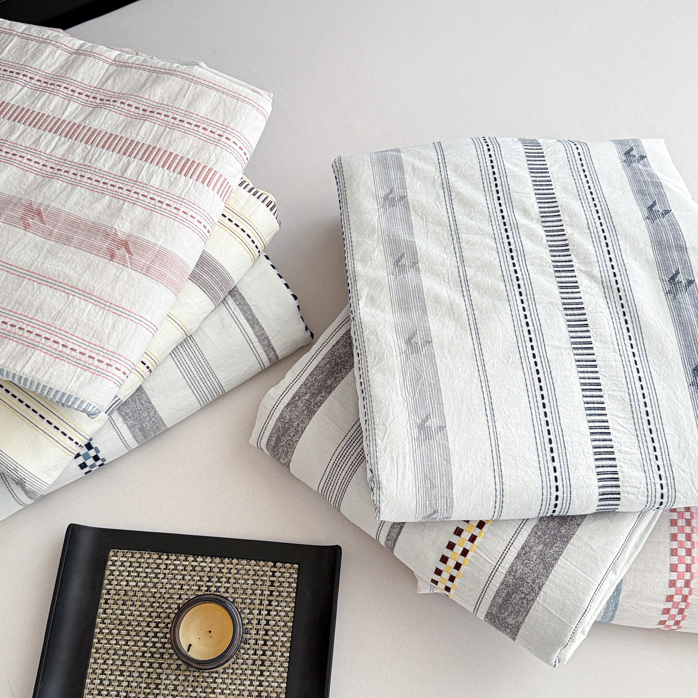 (总)眠博士 2026新款全棉纯棉水洗色织提花股线四件套,套件-未来 蓝,套件-未来 粉,套件-未来 灰,套件-素简 粉,套件-素简 蓝,套件-素简 米