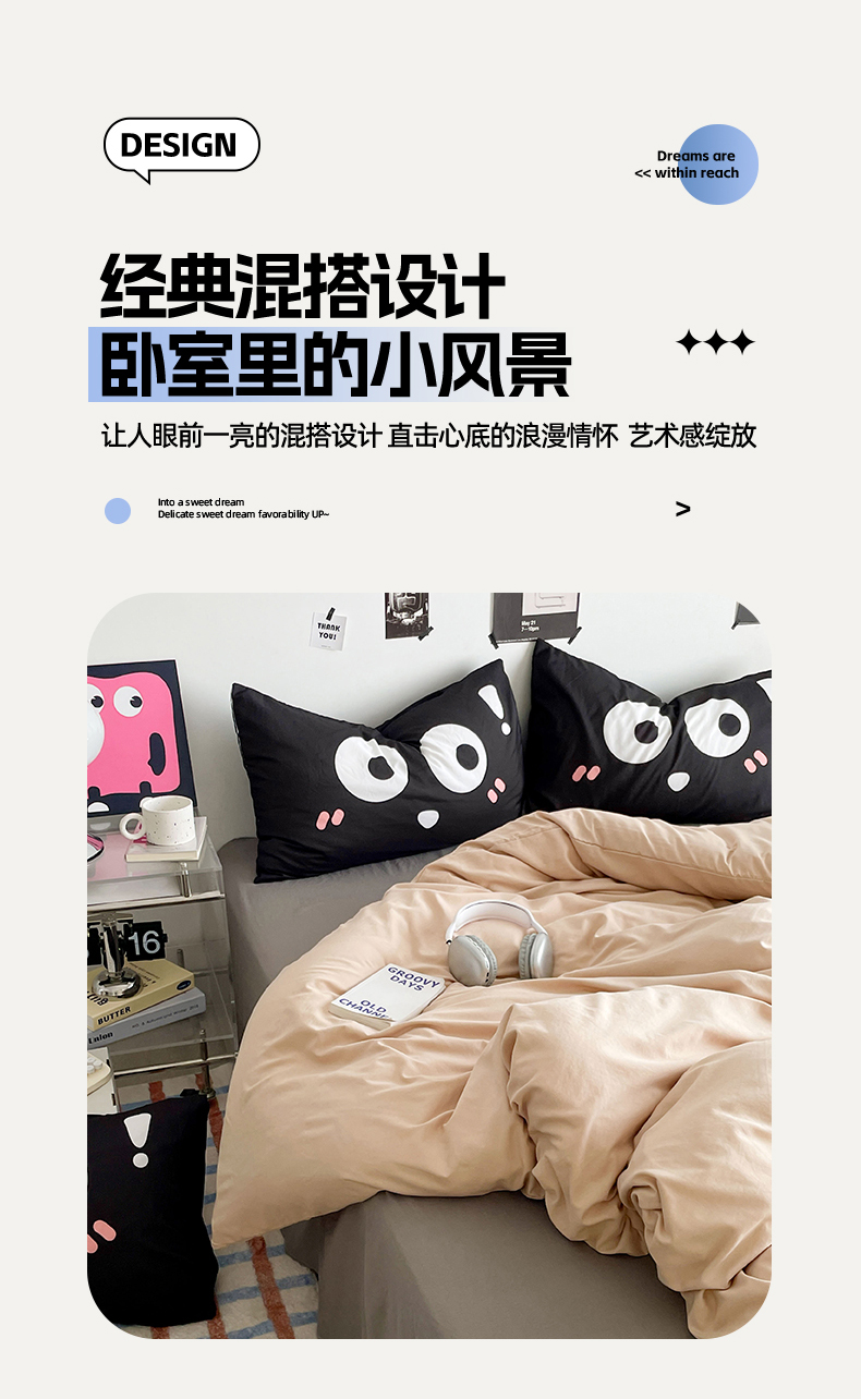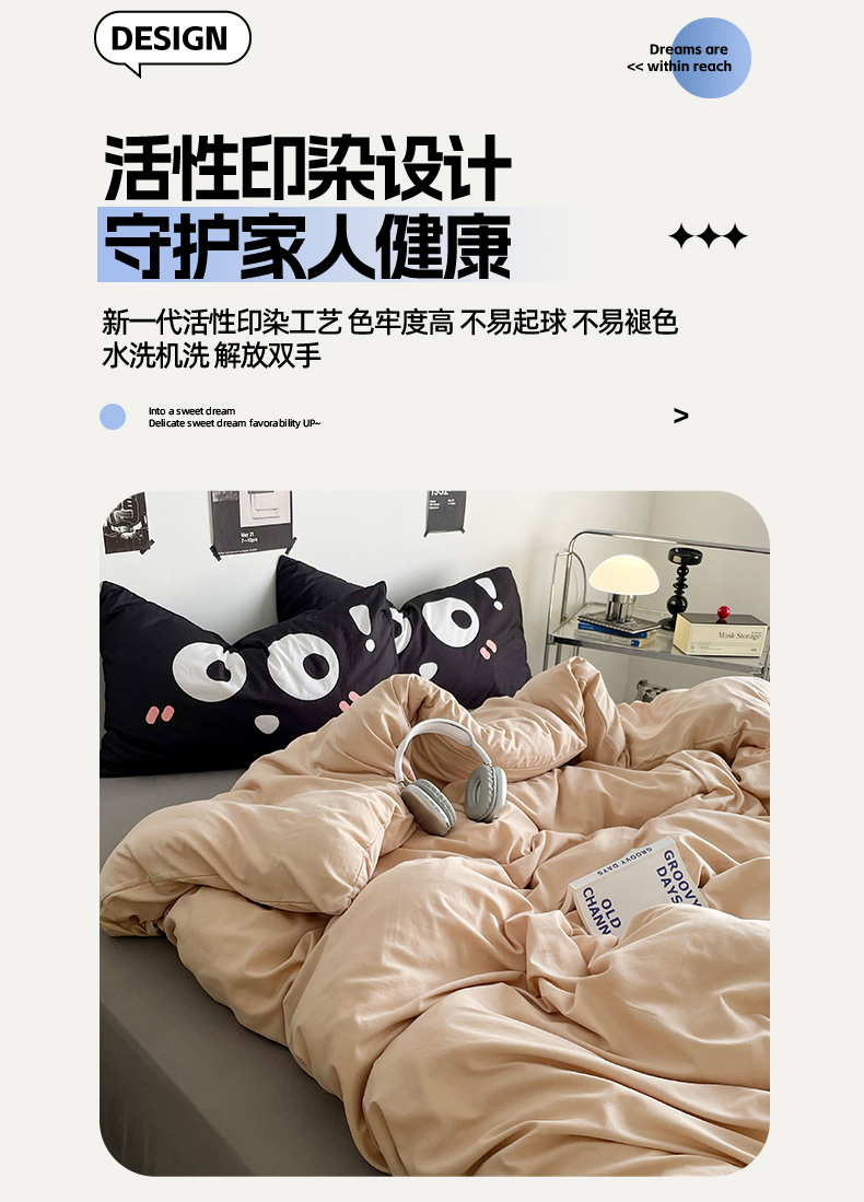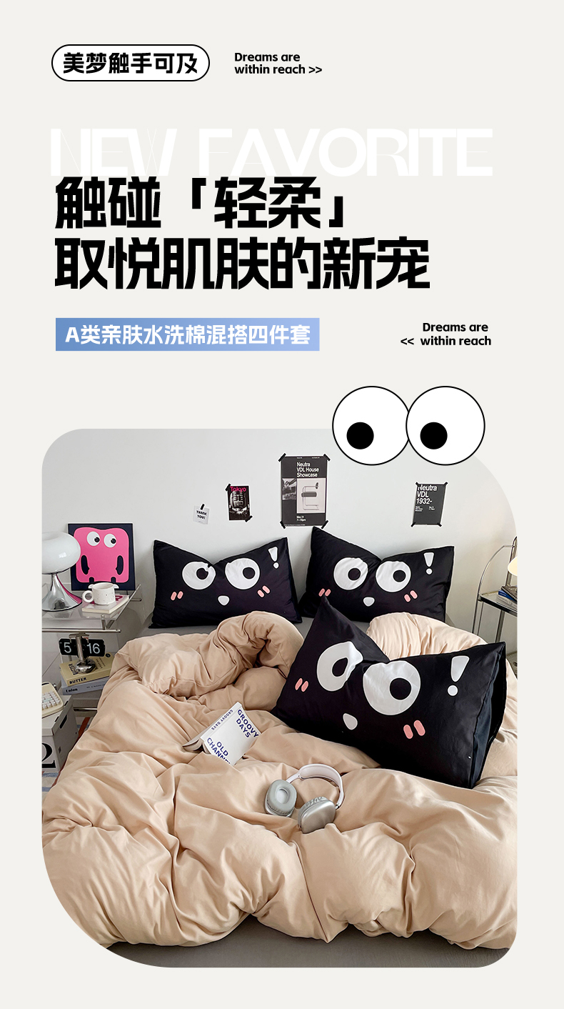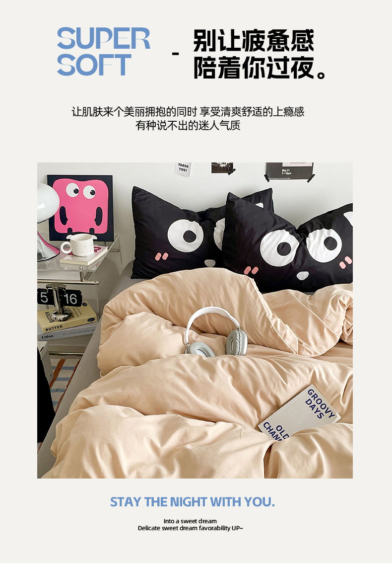 当前位置: 91家纺网 > 商品网购 > 床品套件 > 四件套 > 水洗棉四件套 > 优卡迪家纺馆 2025新款A类亲肤水洗棉大眼萌纯色混搭四件套 大眼萌-卡其灰