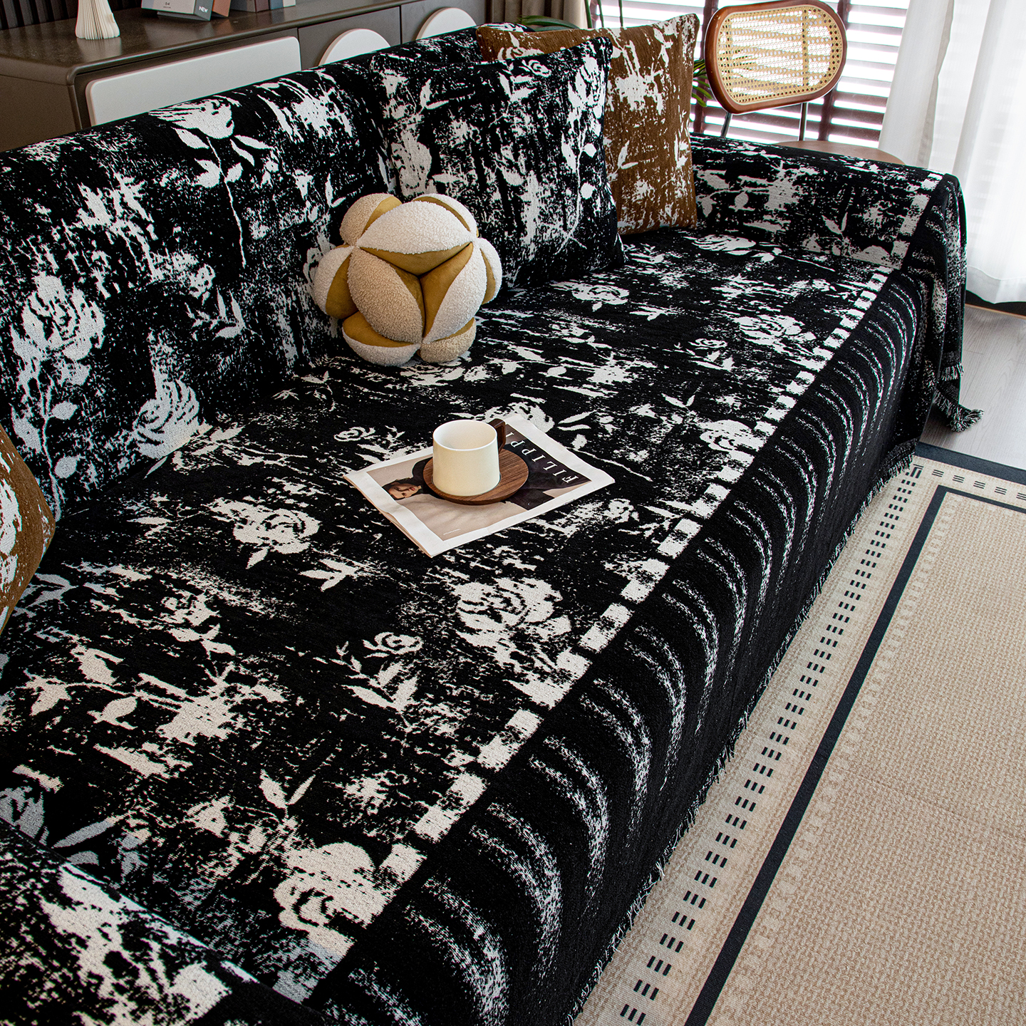 当前位置: 91家纺网 > 商品网购 > 居家布艺 > 坐垫/椅垫/沙发垫 > 沙发 > 沐沐家纺 2026新款花溪沙发巾 黑色