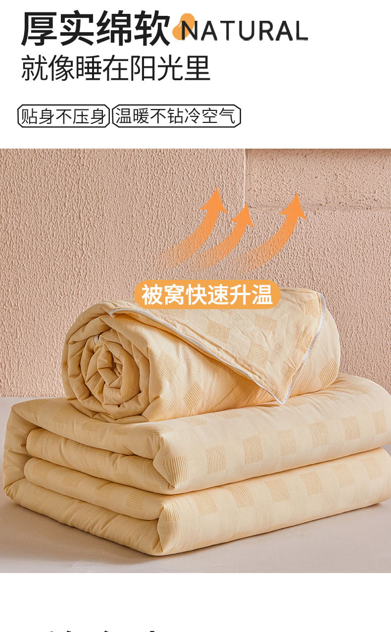 商品名称:阳光被业 2025新款100%纯棉提花子母被冬被全棉大豆被春秋被学生夏被四季棉被 黄色