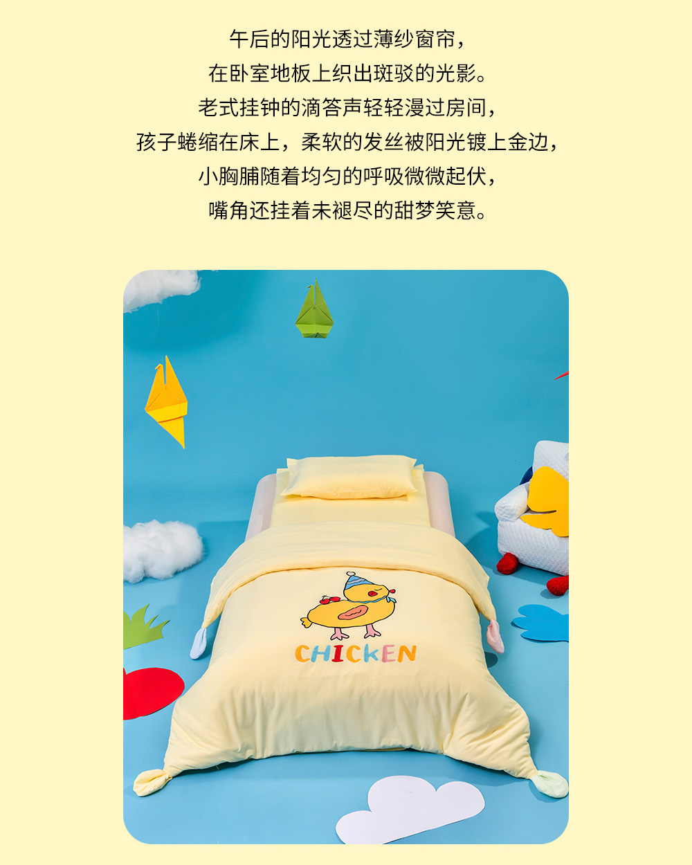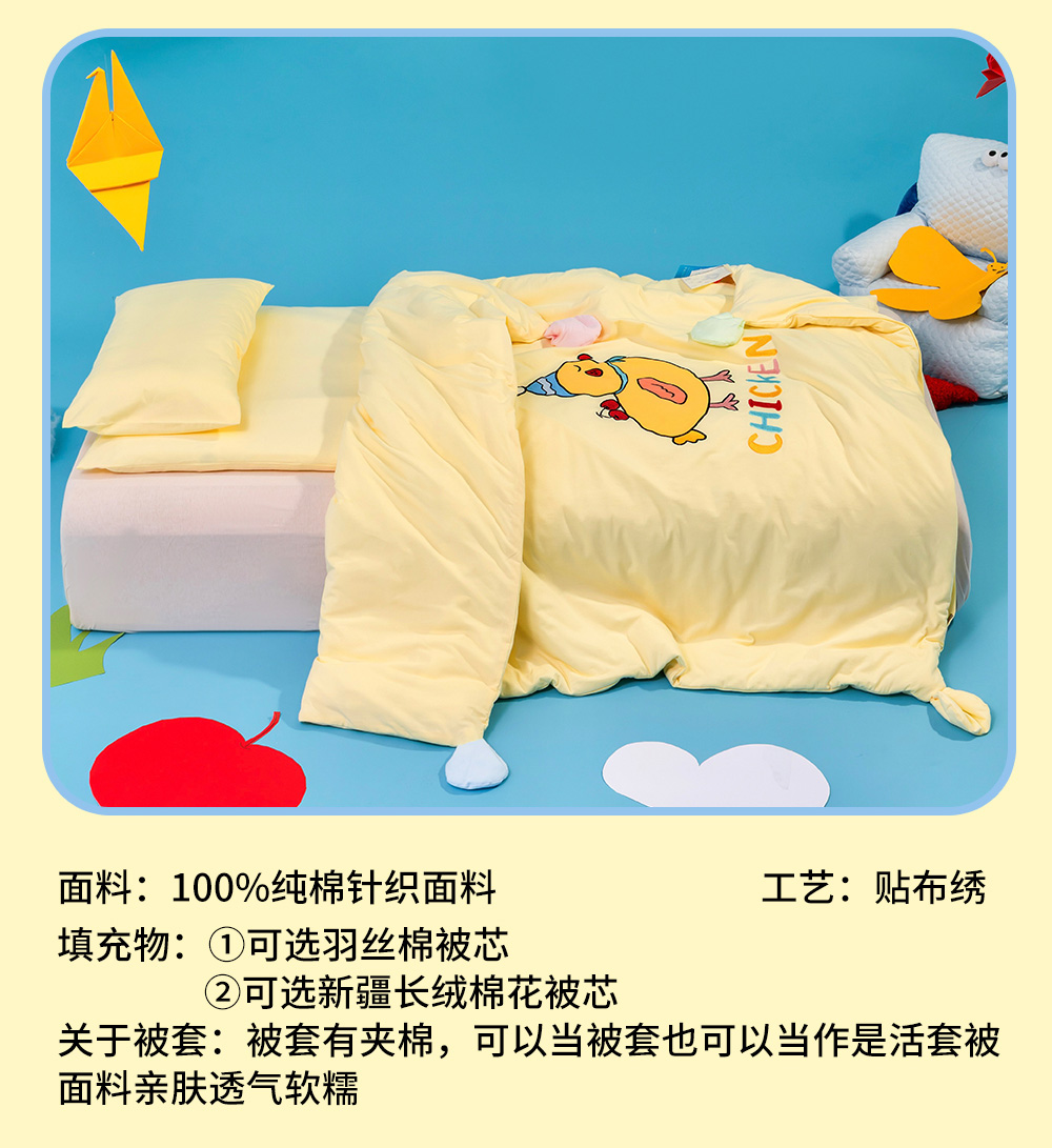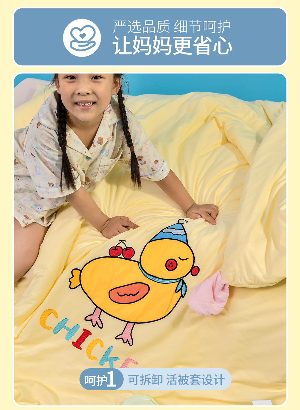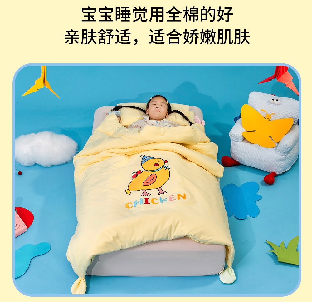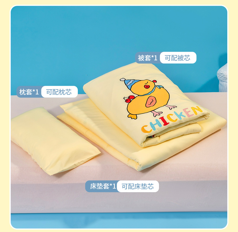 当前位置: 91家纺网 > 商品网购 > 床品套件 > 三件套 > 喜多兔儿童家纺 2025新款小梦幻纯棉针织棉紧密纺绣花幼儿园被子三件套 黄色梦幻小鸭子