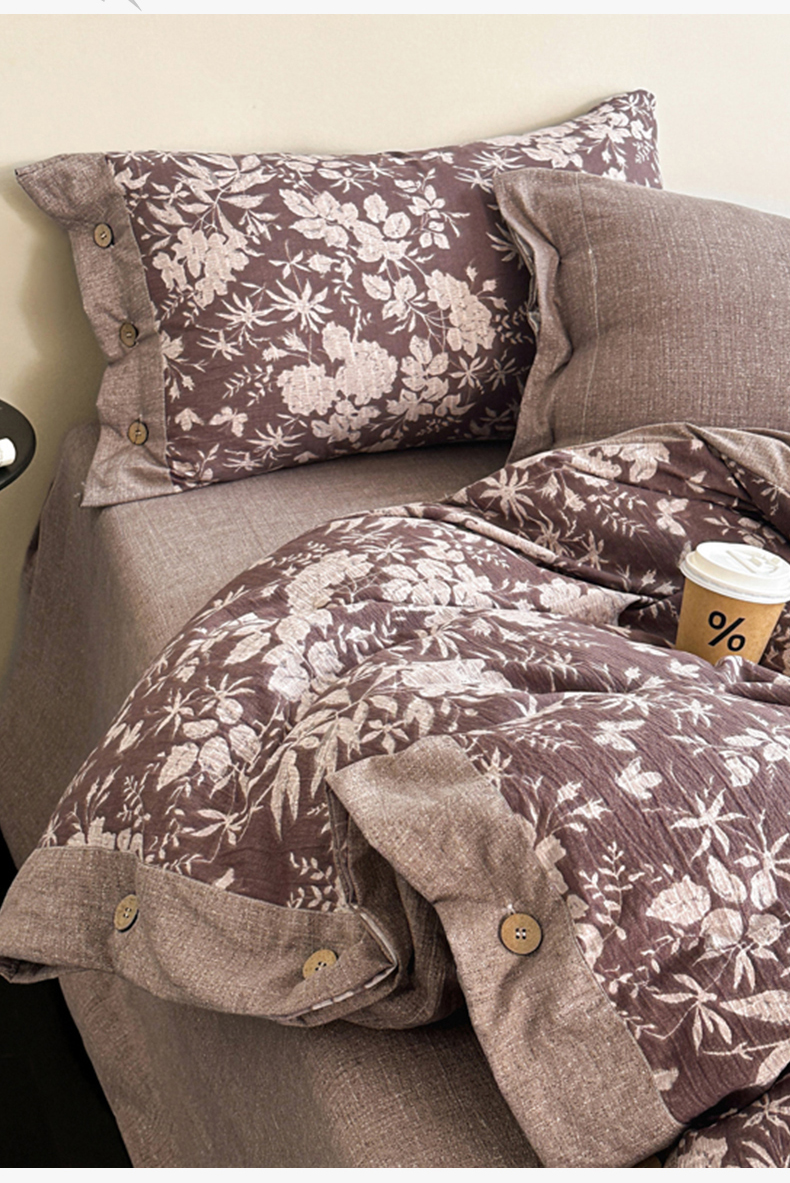 (总)漫仙阁家纺 2025新款加厚高克重原麻复古风印花四件套,布袋子,粉黛,花蕾-咖,花蕾-绿,金枝玉叶,锦簇,盛夏,素锦,向阳花开,一抹香,绽放