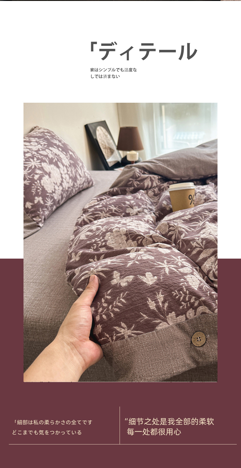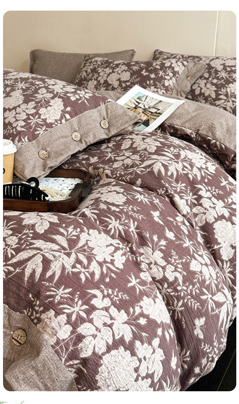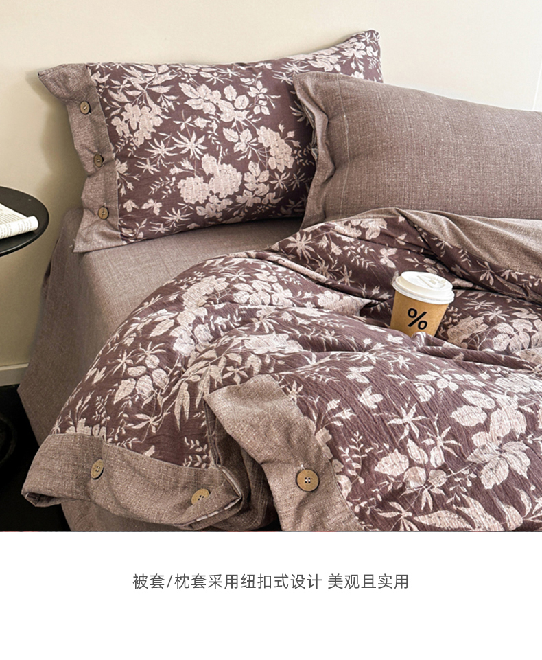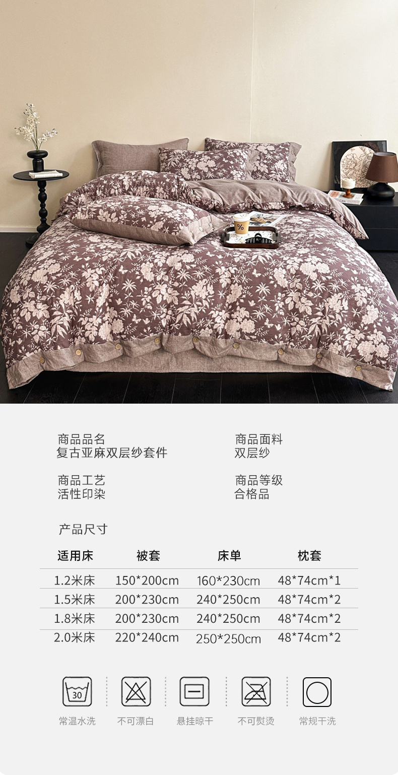 商品名称:漫仙阁家纺 2025秋冬新品加厚高克重复古风双层纱印花四件套 夕颜