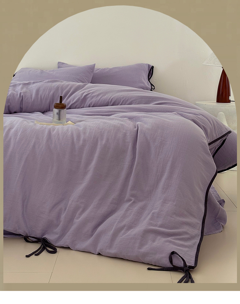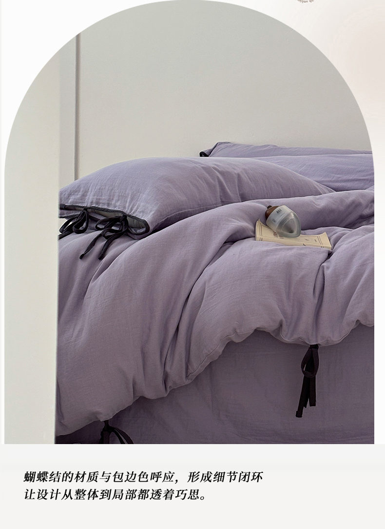 当前位置: 91家纺网 > 商品网购 > 床品套件 > 四件套 > 其它四件套 > FORTWO家纺原创设计(FOR TWO家纺) 2025新款双层纱撞色包边蝴蝶结款四件套-海盐 海盐-木槿紫