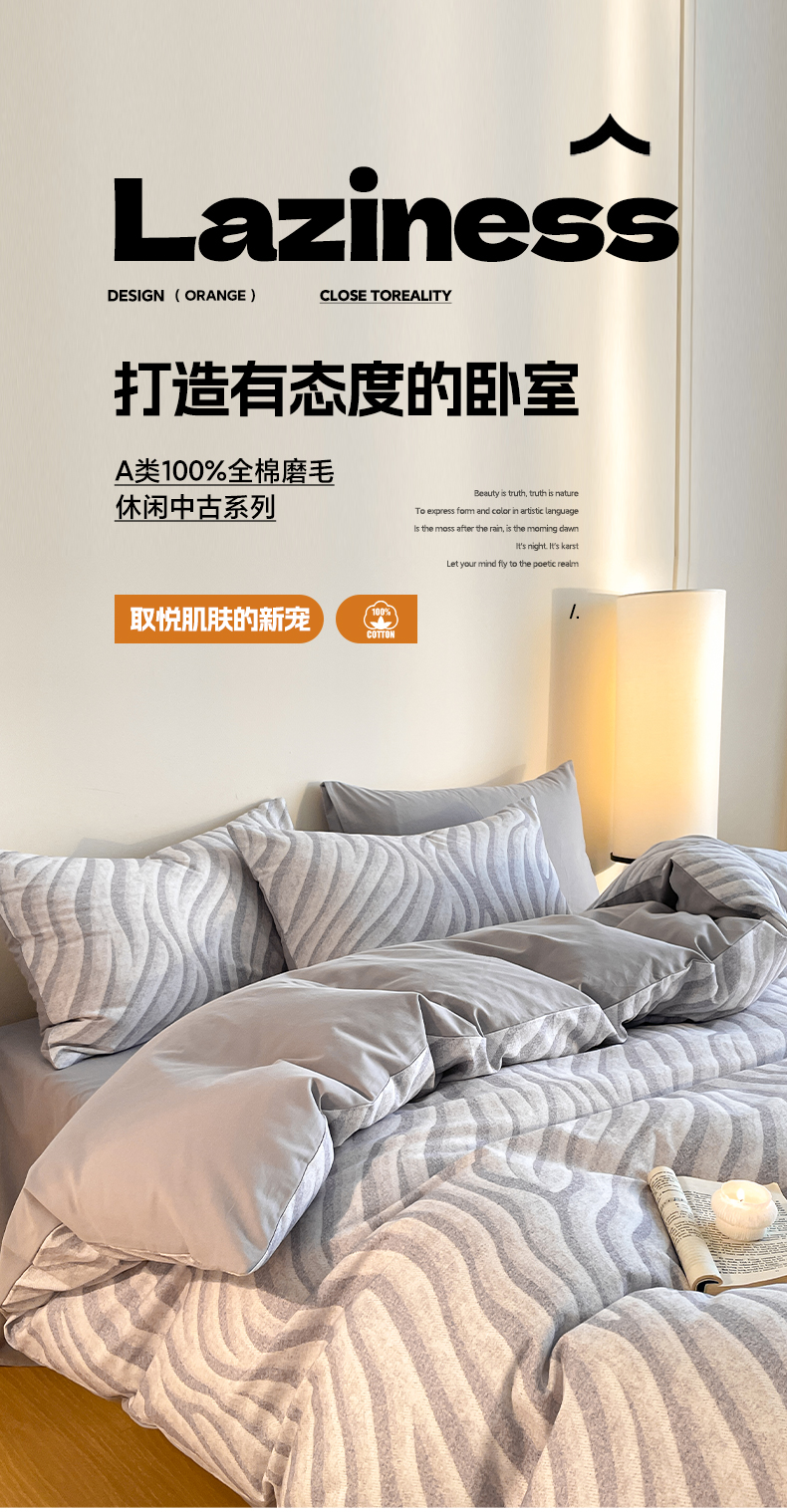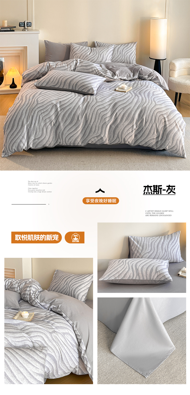 当前位置: 91家纺网 > 商品网购 > 床品套件 > 四件套 > 全棉普通四件套 > 莱登卡奴 2025新款A类100%全棉磨毛休闲中古系列四件套 杰斯-灰