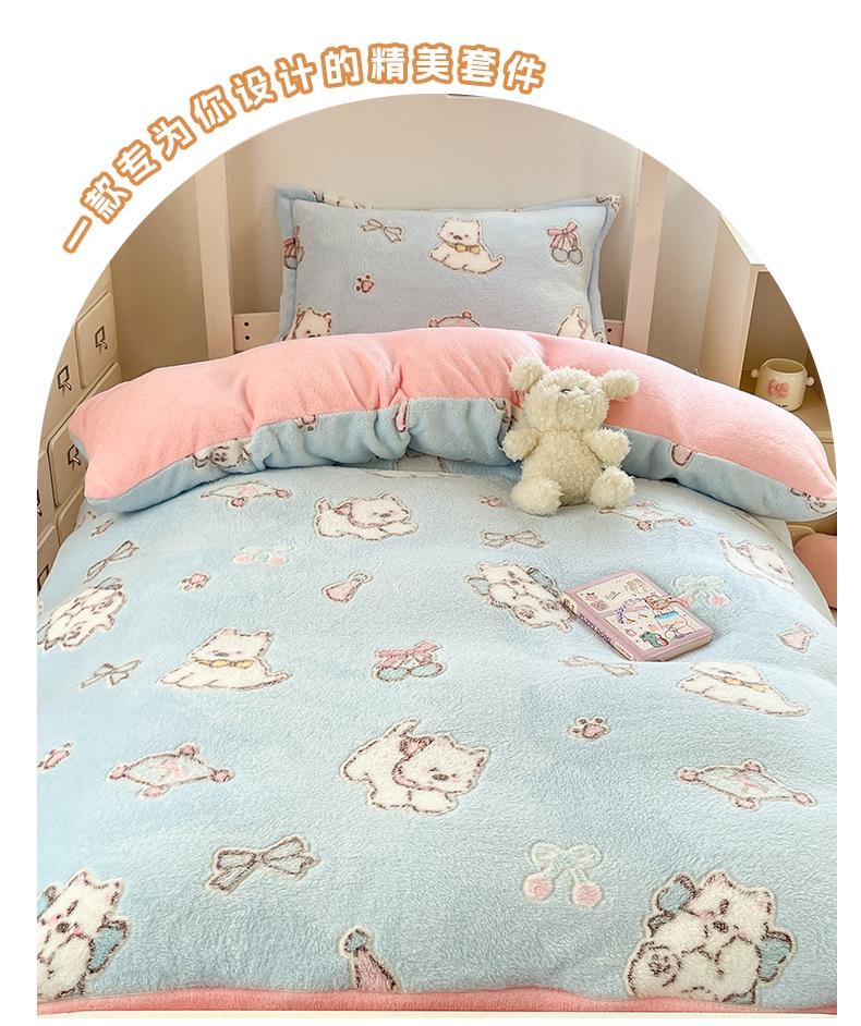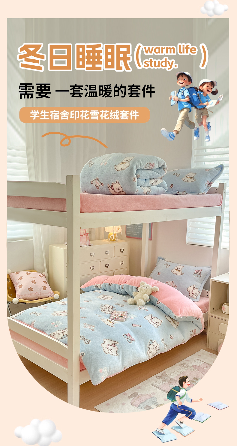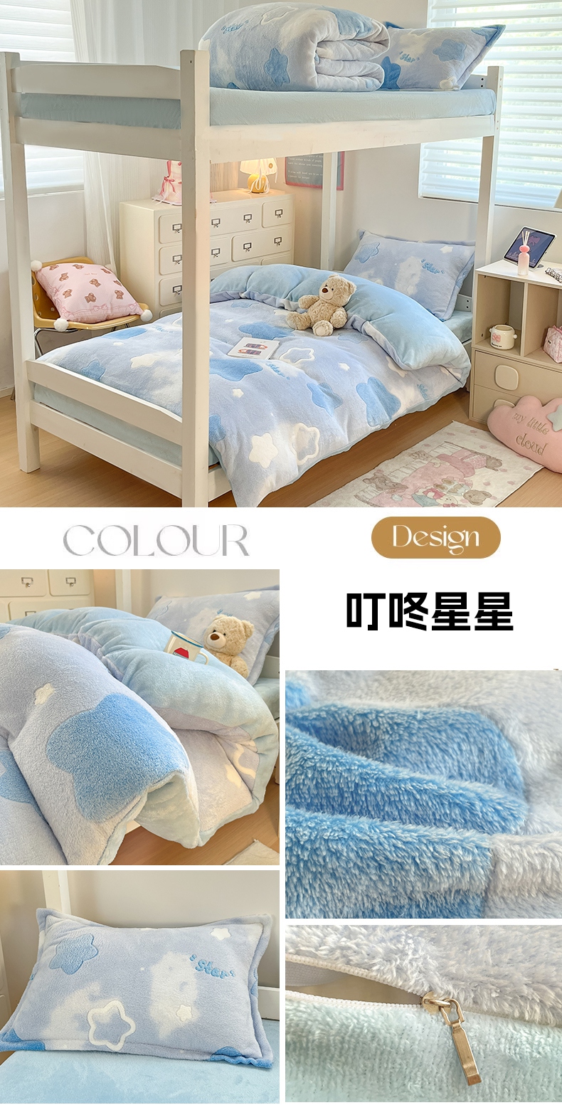 当前位置: 91家纺网 > 商品网购 > 床品套件 > 四件套 > 其它四件套 > 川悦生活 2025新款立体雪花绒印花四件套学生床系列二场景一 奶蓝小汪粉